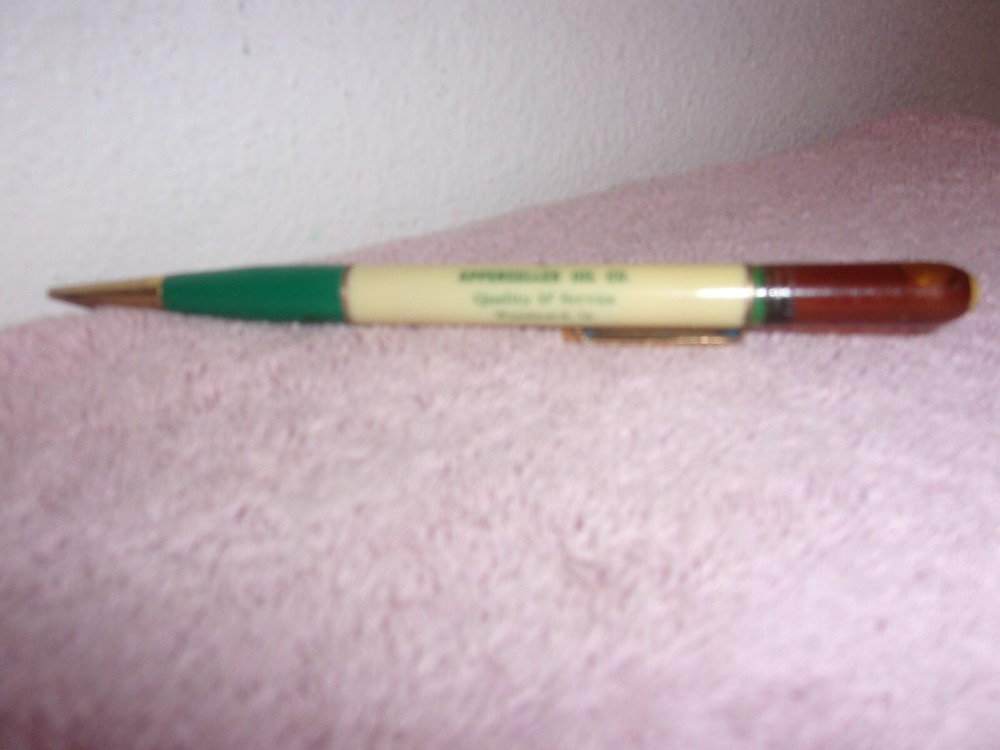 UP FOR SALE TODAY IS A VINTAGE RITEPOINT ADVERTISING MECHANICAL PENCIL FOR CONOCO OIL ..APPENZELLEROIL COMPANY..WOODWARD , LA.....SEE ALL PHOTO'S.....THE PENCEL STILL WORKS FINE......THERE IS SOME WEAR ON THE METAL PARTS ...THE PLASTIC PLASTIC PARTS DON'T SHOW MUCH WEAR AT ALL.....THE PRINTING SHOWS ALMOST NO WEAR.....THE PENCIL MEASURES 5.75" LONG .....A GREAT ADDITION TO YOUR COLLECTION........>>>>>PRICED TO SELL<<<<<........THANKS FOR STOPPING.........GR-1BKCA-1