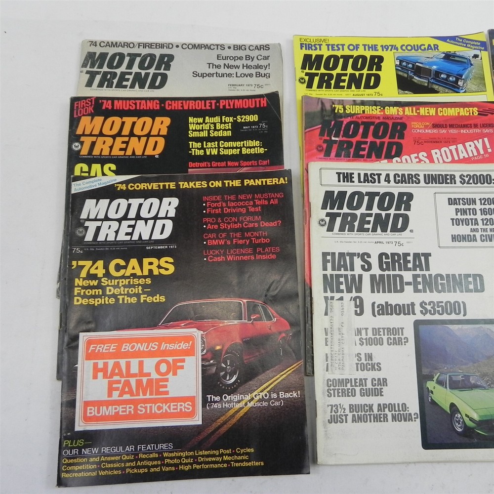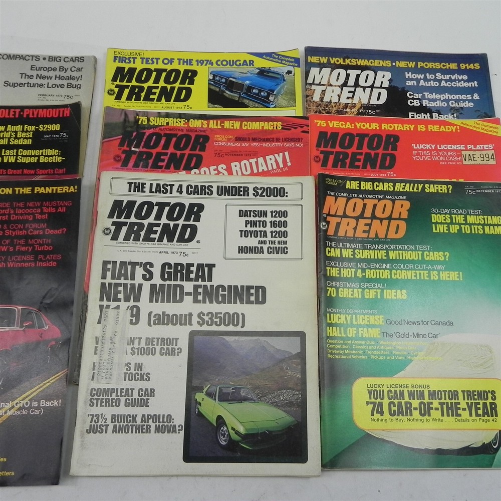 VINTAGE 1973 MOTOR TREND CARS MAGAZINE LOT OF 9 ISSUES PERFORMANCE RACE CARS