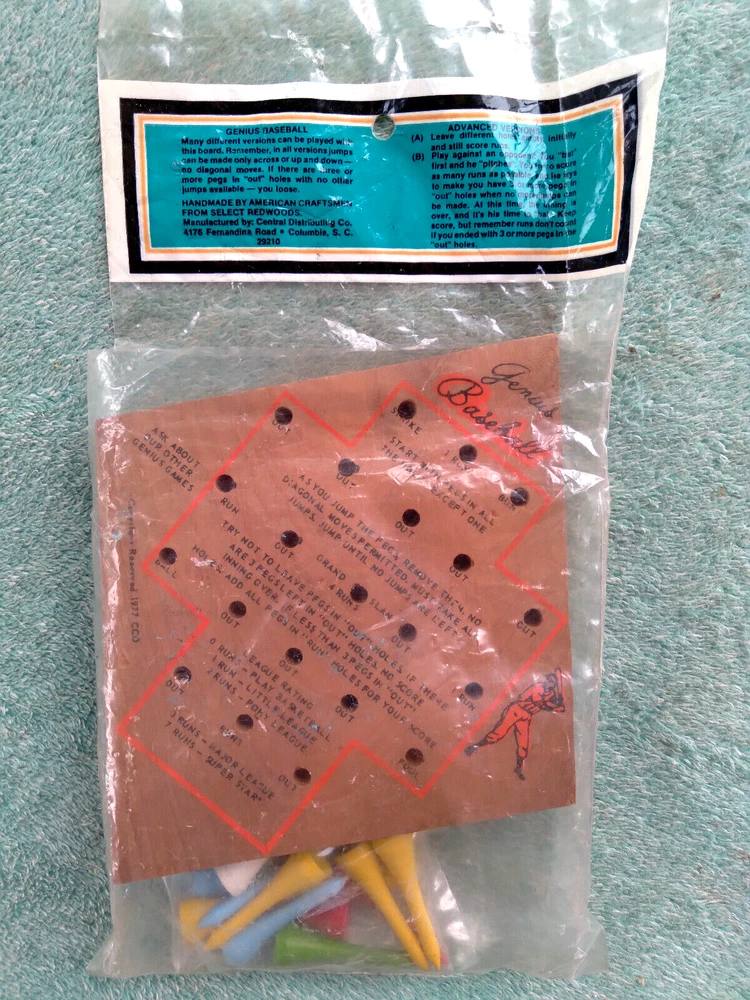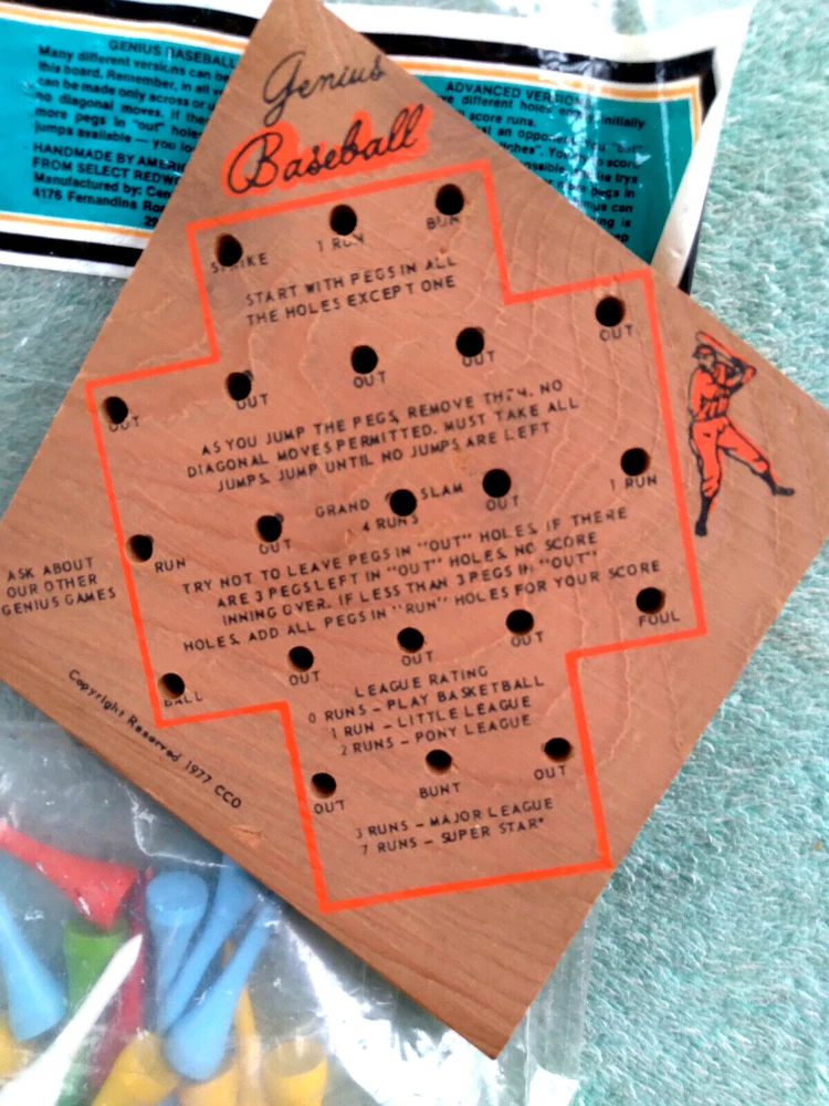 VINTAGE 1977 BASEBALL GENIUS BOARD GAME. BRAIN TEASER TRAVEL GAME. MFG BY C.C.D. IN GREAT CONDITION APPEARS UNUSED, PEGS APPEAR UNOPENED. -PLEASE KEEP IN MIND THAT WHEN YOU PURCHASE VINTAGE ITEMS, THEY MAY NOT BE PERFECT AND DEMONSTRATE CHARACTERISTICS OF AGE AND/OR USE. -ITEMS FOUND AT LOCAL ESTATE SALES HERE IN NORTHEASTERN PENNSYLVANIA. -ITEMS ARE SOLD AS FOUND. SOME ITEMS MAY NEED TO BE CLEANED! PLEASE BE SURE TO SEE ALL PHOTOS, AS THEY ARE A VITAL PART OF THE DESCRIPTION!