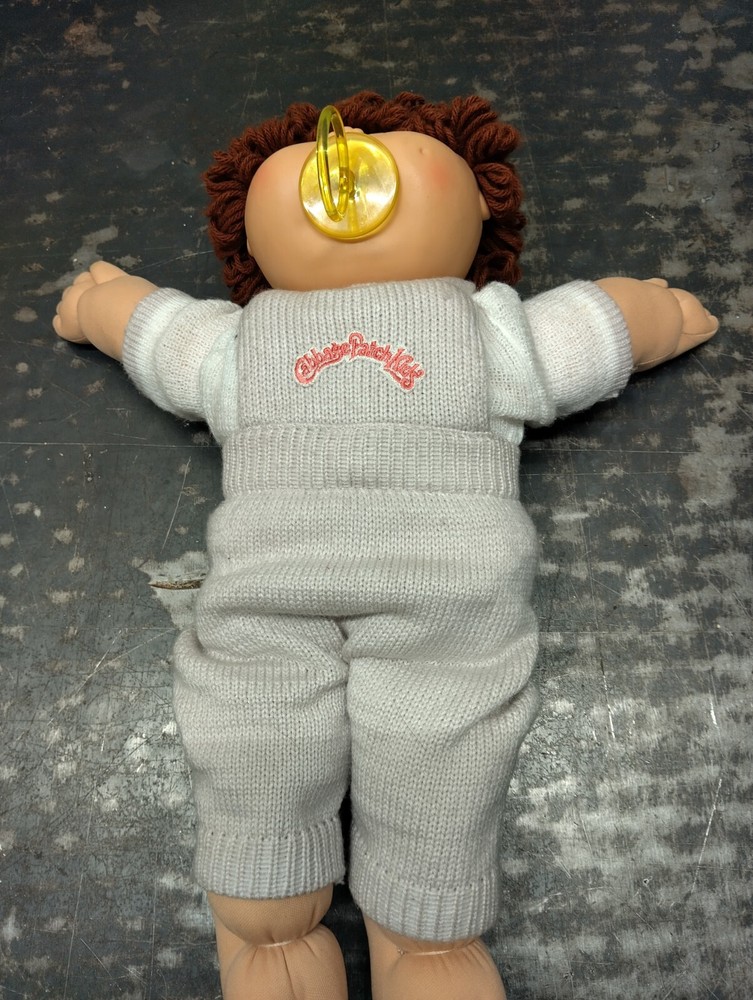 VINTAGE 1985 CABBAGE PATCH KIDS BROWN HAIR + EYES BOY W/ KNITTED OUTFIT