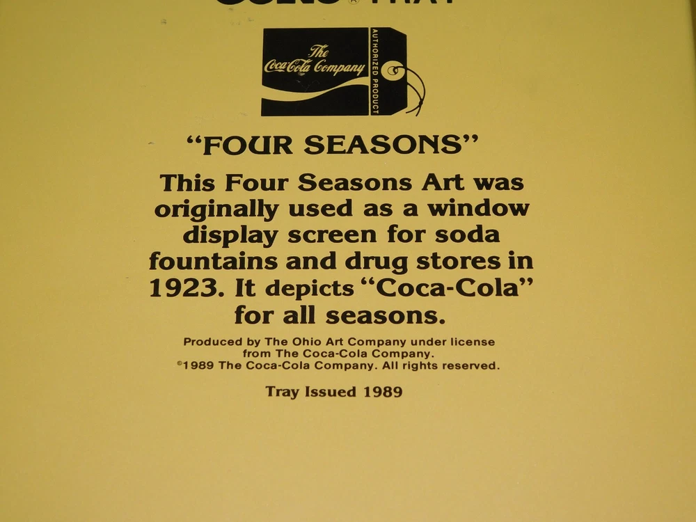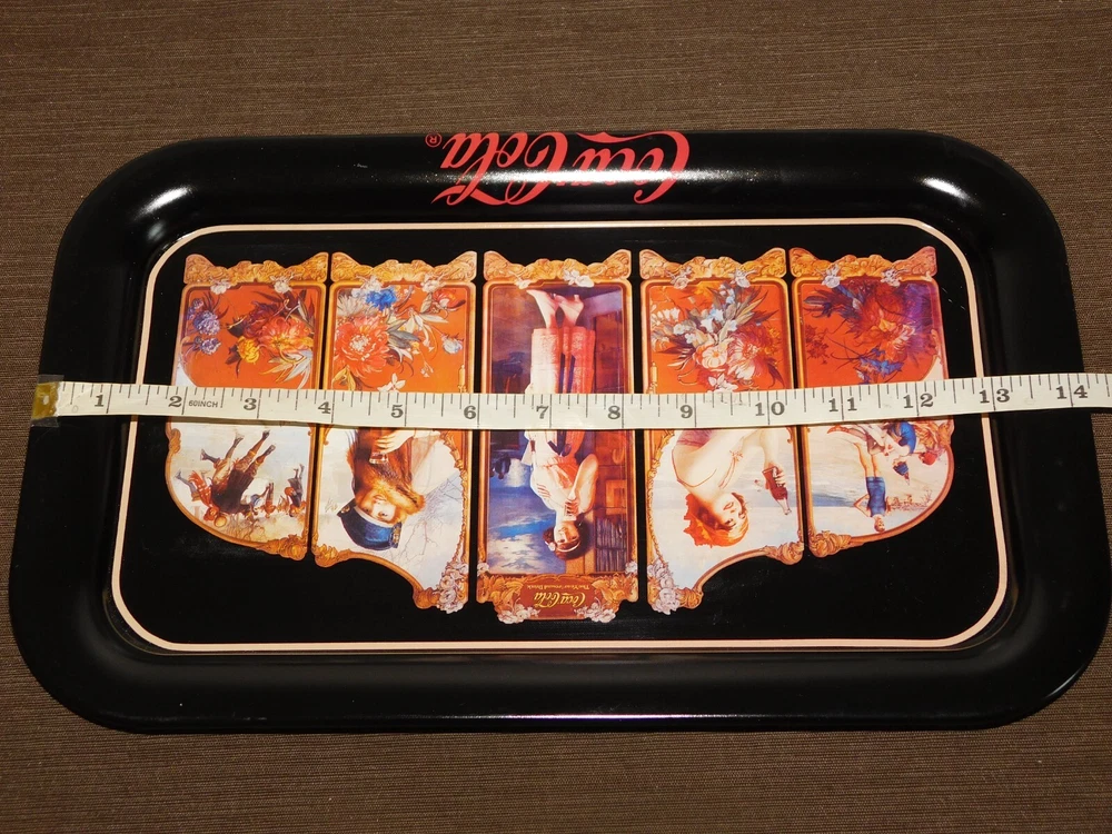 YOU ARE BIDDING ON..... VINTAGE 1989 COKE COCA COLA METAL 14 1/4" X 8 3/4" SERVING TRAY ...SHOWS USAGE/HANDLING/AGE WEAR..HAS SCRATCHES/PAINT LOSS/AGE DISCOLORATION...... PLEASE VIEW PHOTOS FOR CONDITION.***PLEASE E-MAIL IF YOU HAVE A QUESTION OR WANT AN ADDITIONAL PICTURE....PLEASE VISIT MY EBAY STORE FOR ADDITIONAL VINTAGE ITEMS..THANK YOU***12VBX3661-XXXX