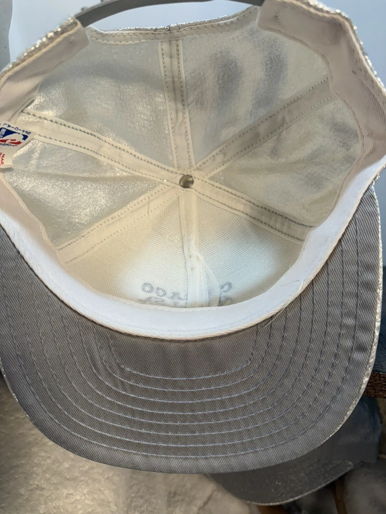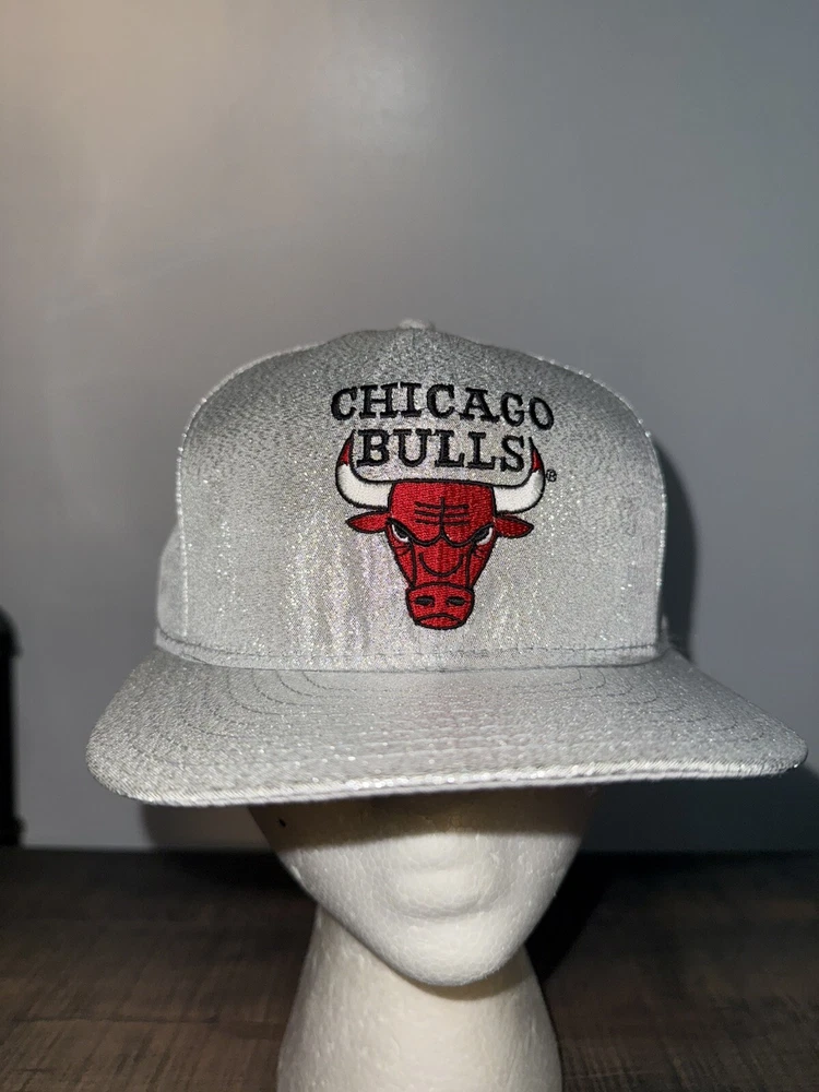 VINTAGE CHICAGO BULLS 1990'S SILVER METALIC SNAPBACK HAT-MADE ONE YEAR, AJD MADE IN UNITED STATES. BUYER TO PAY $6.95 SHIPPING