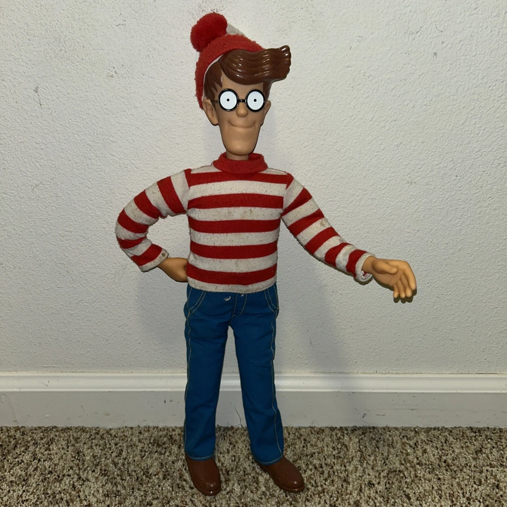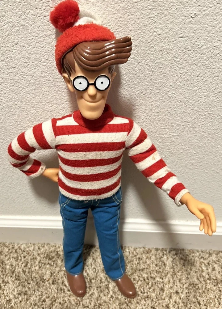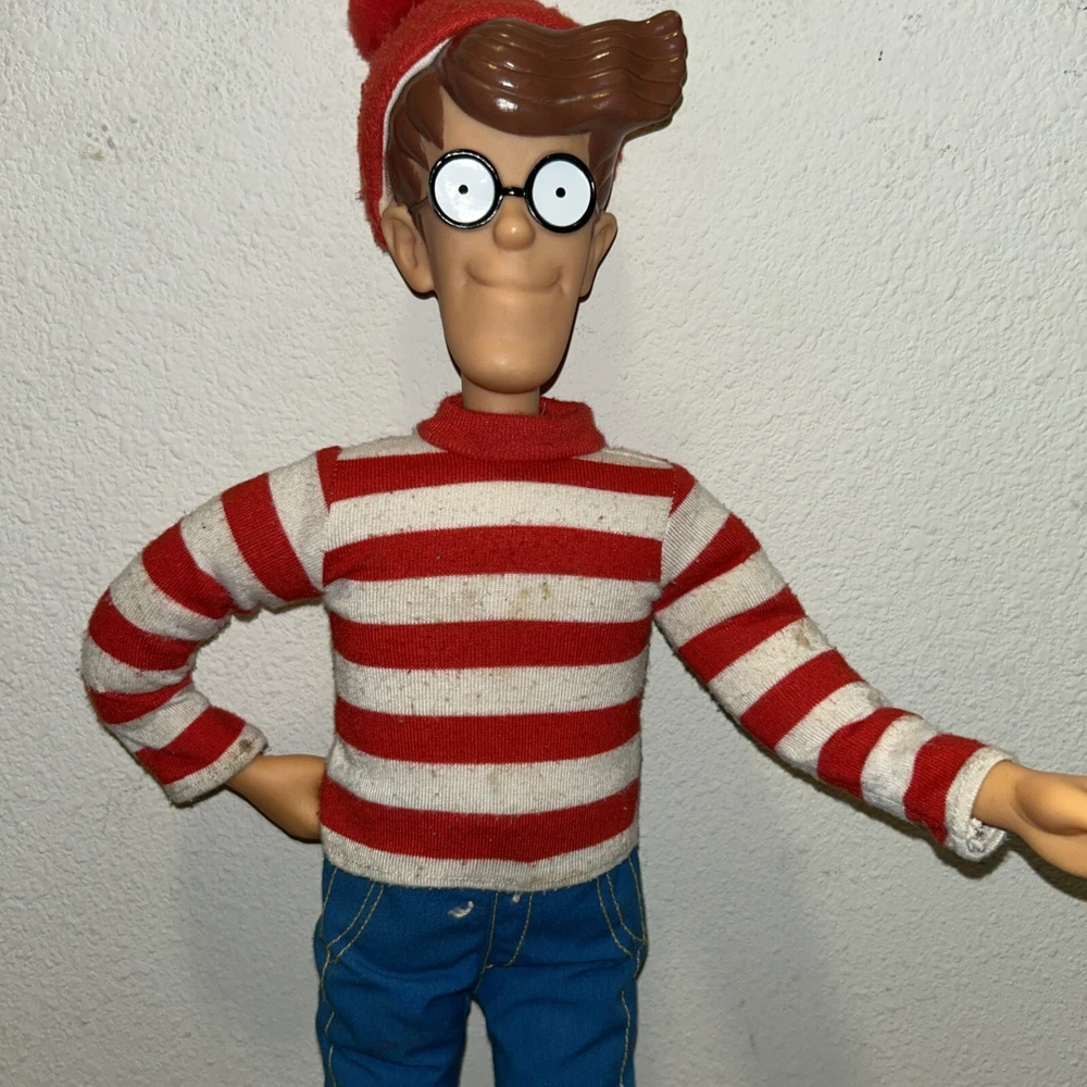 This is a rare and highly sought-after 1991 Mattel Where's Waldo doll, measuring 18 inches tall and featuring poseable joints. The doll is in its original packaging and has never been opened, making it a true collector's item. It was manufactured in China and is part of the beloved character family, WHERE'S WALDO. This vintage doll is perfect for collectors of toys and hobbies, and is sure to be a cherished addition to any collection. Its brand, Mattel, is known for producing high-quality and popular toys that are both fun and durable. Don't miss out on the chance to own this rare and unique doll! See pics for wear