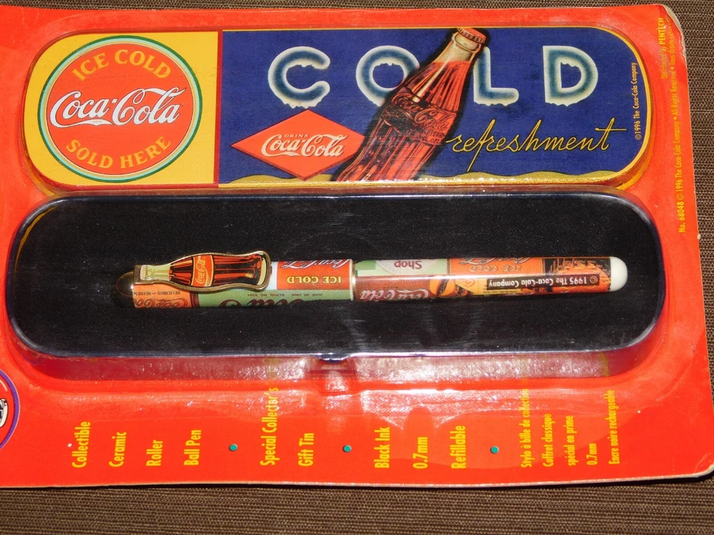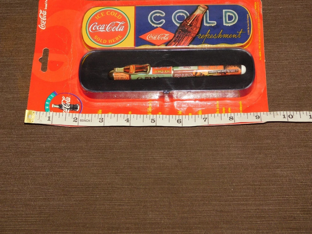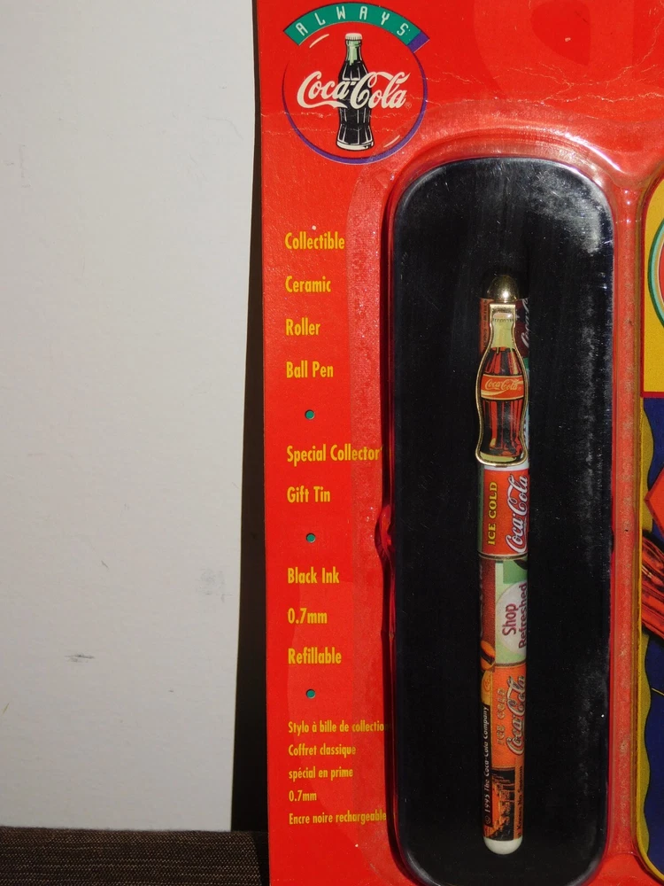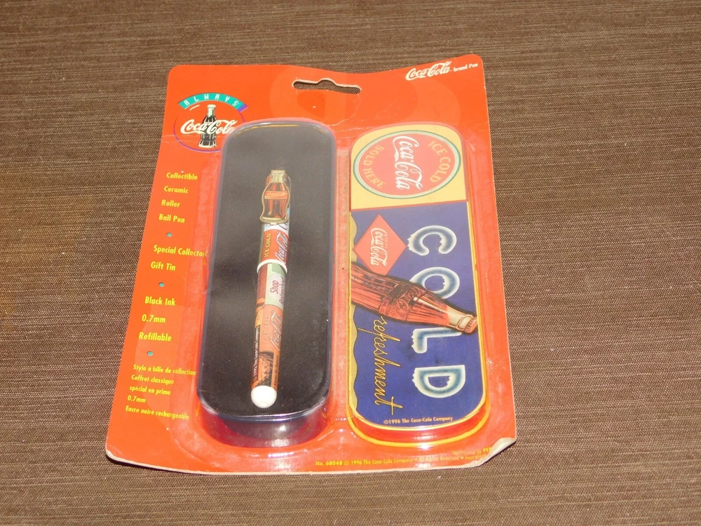 YOU ARE BIDDING ON..... VINTAGE 1996 COCA COLA ROLLER BALL PEN IN COKE GIFT TIN NEW OLD STOCK **PACKAGING SHOWS STORAGE WEAR..HAS STAINS/ CREASES /SMALL TEARS/AGE DISCOLORATION ... DUE TO AGE INK MIGHT BE DRIED OUT. ... PLEASE VIEW PHOTOS FOR CONDITION.***PLEASE E-MAIL IF YOU HAVE A QUESTION OR WANT AN ADDITIONAL PICTURE....PLEASE VISIT MY EBAY STORE FOR ADDITIONAL VINTAGE ITEMS..THANK YOU***12VBX1849-XXXX