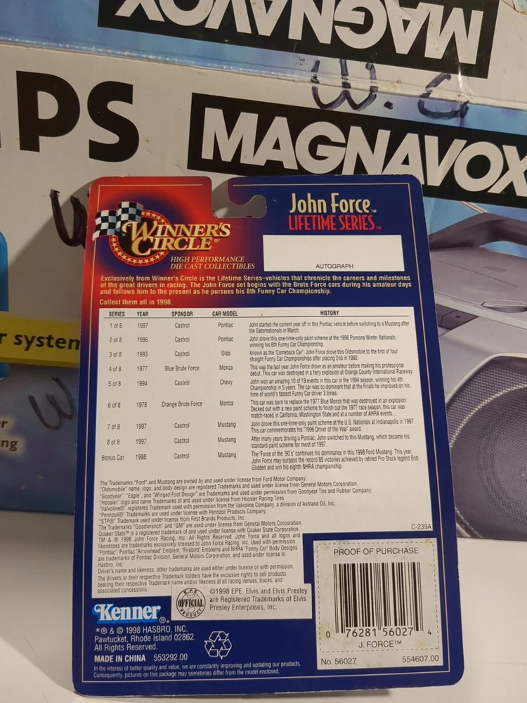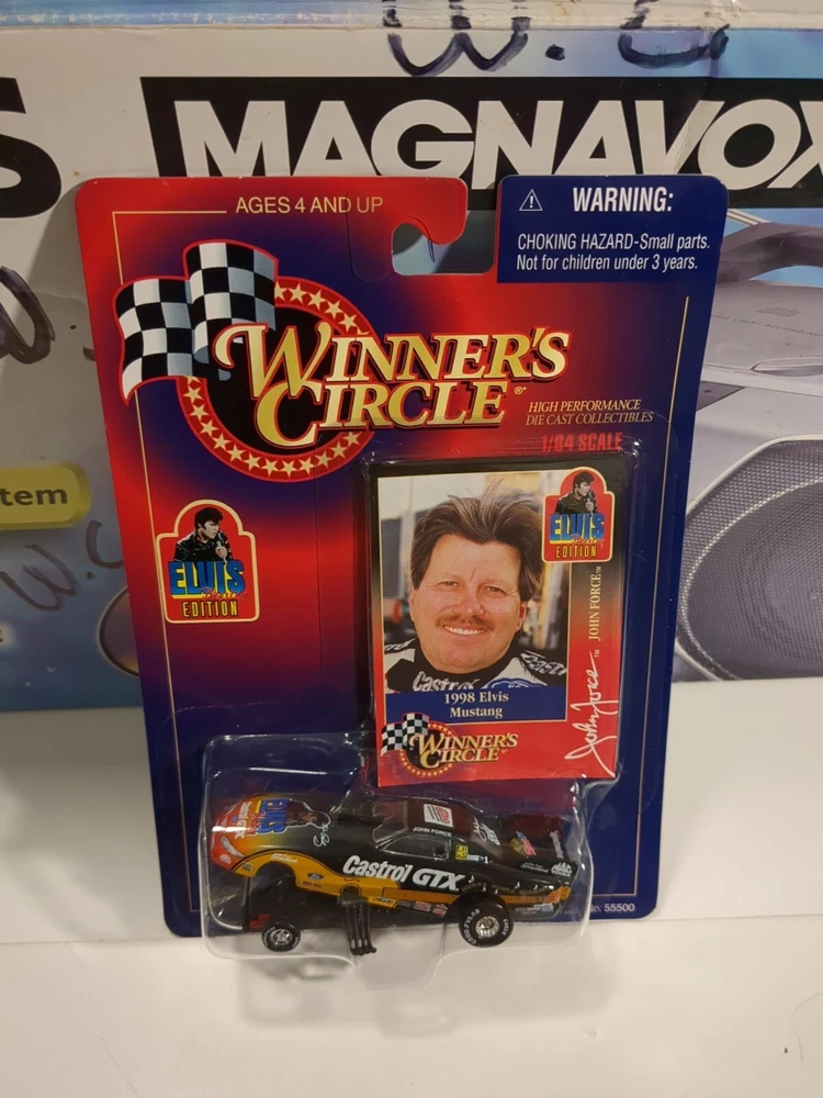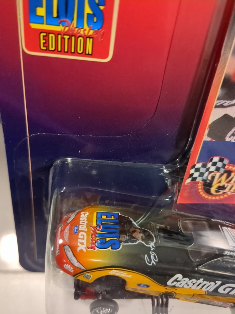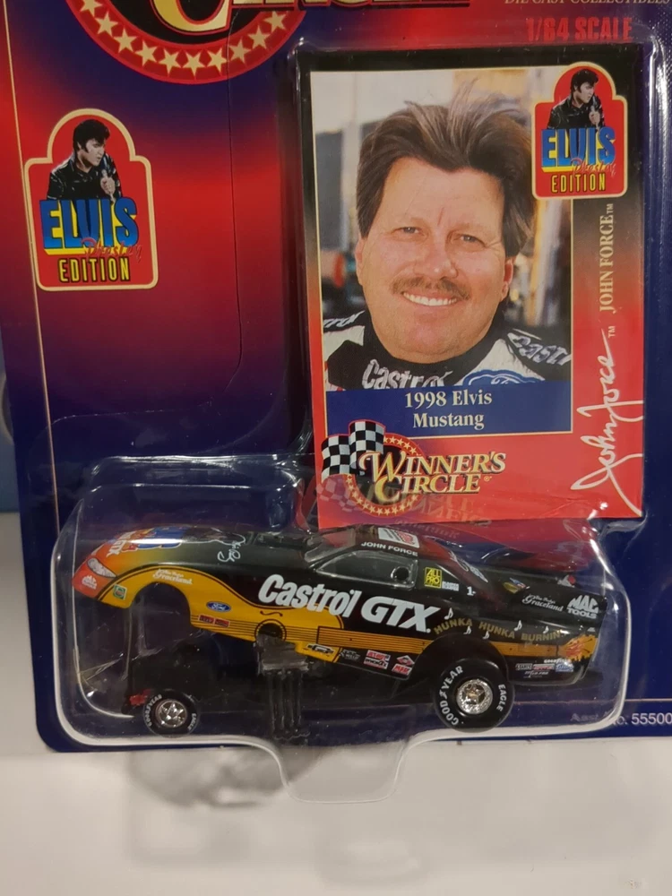 This vintage 1998 Hasbro Winners Circle NHRA John Force Elvis Prestage Edition diecast model car is a must-have for any car enthusiast or collector. With a multi-colored design and a 1:64 scale, this Ford Mustang model is a perfect addition to your collection. The car features the iconic John Force character family and is made from high-quality materials, making it a durable and long-lasting piece. The RACING CHAMPIONS series and the Ford Mustang model make this diecast car a unique and valuable item. The vehicle year is 1998, and it was manufactured with great attention to detail. This contemporary manufacture car is perfect for display or as a gift for a car lover. See pics for condition