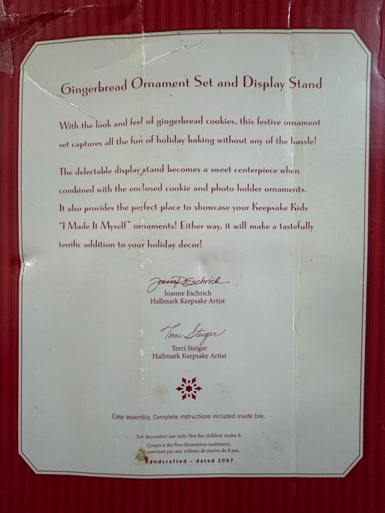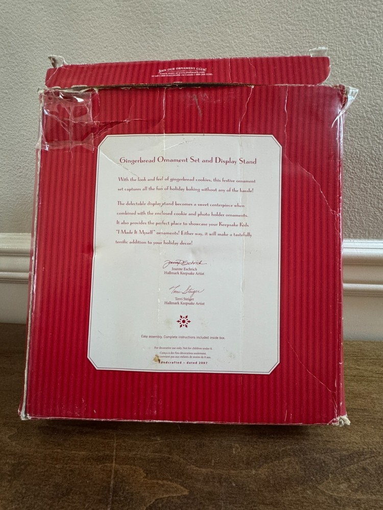 VINTAGE 2007 HALLMARK KEEPSAKE 11 GINGERBREAD ORNAMENT SET AND PLASTIC DISPLAY STAND GOOD USED CONDITION, BOX SHOWS WEAR AND TEAR, SEE PHOTOS USE THE SHIPPING PULL DOWN MENU TO SELECT YOUR PREFERRED SHIPPING CARRIER PLEASE ZOOM IN FOR DETAILS AND ASK ANY QUESTIONS THANK YOU FOR LOOKING Disclaimers All items are from local estate sales and garage sales around San Diego, Ca. All items sold by us are being described to the best of our ability and with utmost conscientiousness on our part, but please know we are not experts. To avoid any potential oversights, we respectfully request your assistance in thoroughly reviewing the description, photos and asking questions prior to Buying/Bidding. Any damage will be mentioned and included in photographs. Shipping Item(s) will be shipped within 1 business day (Monday-Friday) after payment has cleared. Depending on the fragility of the item, combined shipping may not be available on all items . Please message me to discuss shipping options. Return Policy 100% Satisfaction Guaranteed. We want to ensure that you are completely satisfied with your purchase. If not, then please let us know by messaging us on eBay before leaving any feedback & allow us to work with you to completely resolve any issues that you might be facing with your order. If you feel that you got an item that is different from what you ordered or if it arrived damaged or if you have any problems with the item, please email us & we will be glad to work with you in resolving any issues. All returns must reach us within 30 days after the item was delivered to you. The items must be in their original condition when they were sent to you. We will issue you a refund within 3 business days once the item has been received. Note: Depending on the reason for return, the original cost of shipping may not be included in refund amount.