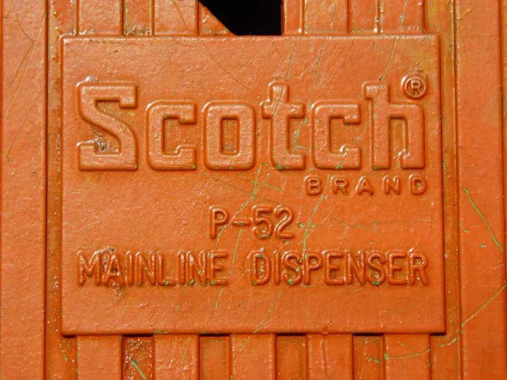 YOU ARE BIDDING ON... VINTAGE SCOTCH COMMERCIAL USE P-52 MAINLINE PACKAGING TAPE DISPENSER .. ..HEAVY DUTY..WEIGHS APPROX 6 1/2 LBS..MOSTLY PLASTIC..BASE MEASURES APPROX 10" X 5"..WORKS GREAT HOLDS ROLLS UP TO 2" WIDE.....SHOWS A LOT OF USAGE/AGE WAR..HAS SCRATCHES/PAINT LOSS/AGE DISCOLORATION.........PLEASE VIEW PHOTOS FOR CONDITION.***PLEASE E-MAIL IF YOU HAVE A QUESTION OR WANT AN ADDITIONAL PICTURE....PLEASE VISIT MY EBAY STORE FOR ADDITIONAL VINTAGE ITEMS..THANK YOU***5R-BX 3020-XXXX
