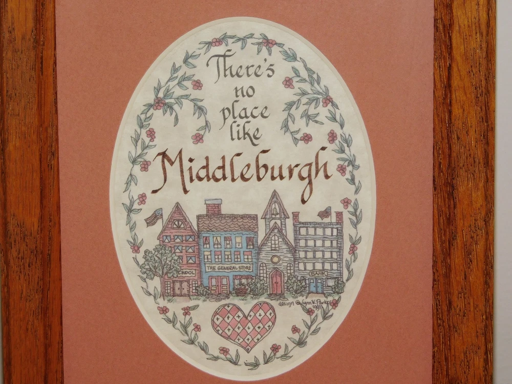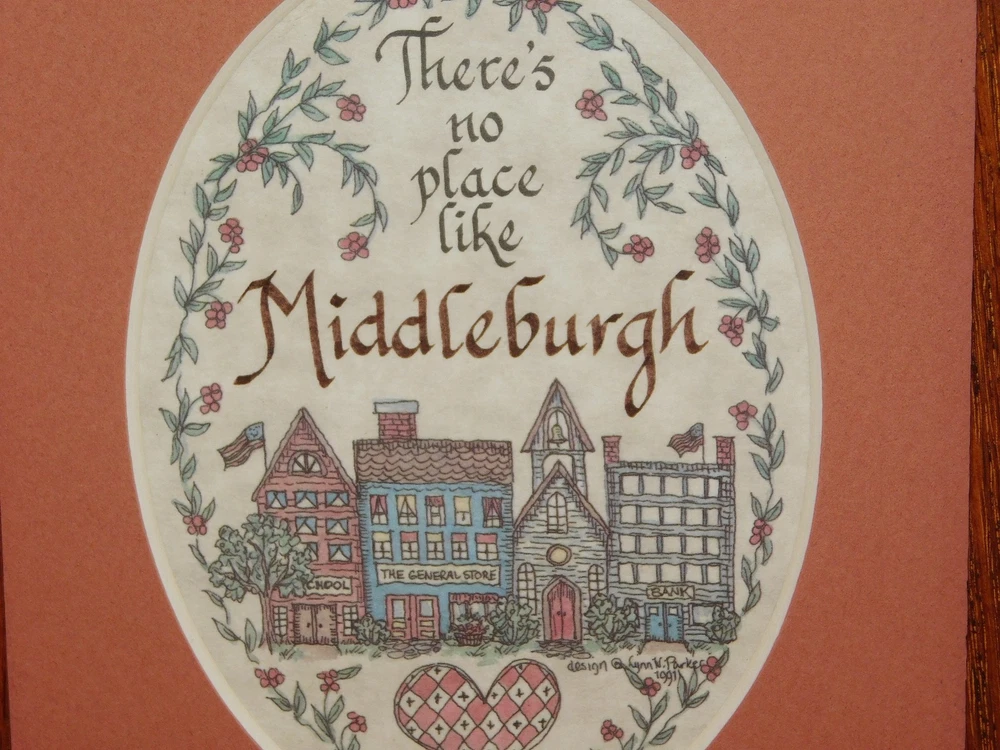 VINTAGE 8" X 6" THERE'S NO PLACE LIKE MIDDLEBURGH CALLIGRAPHY WALL PICTURE
