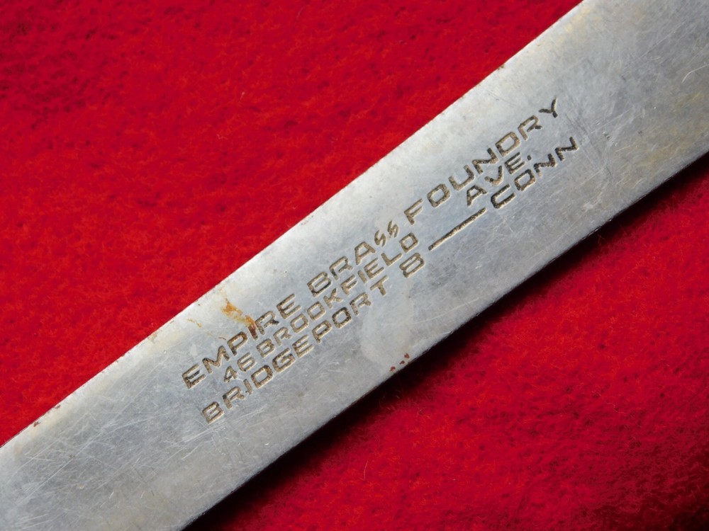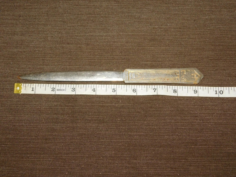 YOU ARE BIDDING ON....... VINTAGE 9 1/2" LONG EMPIRE BRASS FOUNDRY BRIDGEPORT CONN EAGLE LETTER OPENER ....SHOW A LOT OF USAGE/AGE WEAR..HAS SCRATCHES/PAINT LOSS/AGE DISCOLORATION .....PLEASE VIEW PHOTOS FOR CONDITION.***PLEASE E-MAIL IF YOU HAVE A QUESTION OR WANT AN ADDITIONAL PICTURE....PLEASE VISIT MY EBAY STORE FOR ADDITIONAL VINTAGE ITEMS..THANK YOU***2T-BX2021-XXXX