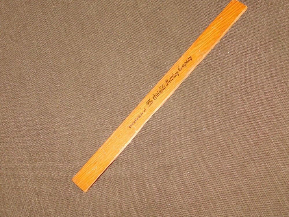 YOU ARE BIDDING ON..... VINTAGE AD COMPLIMENTS OF THE COCA COLA BOTTLING COMPANY 12" WOOD RULER .... .... .SHOWS USAGE/AGE WEAR ... HAS A LOT OF EDGE WEAR & DAMAGE-MISSING WOOD/AGE DISCOLORATION ... ..PLEASE VIEW PHOTOS FOR CONDITION.***PLEASE E-MAIL IF YOU HAVE A QUESTION OR WANT AN ADDITIONAL PICTURE....PLEASE VISIT MY EBAY STORE FOR ADDITIONAL VINTAGE ITEMS..THANK YOU***10U-BX1829-XXXX