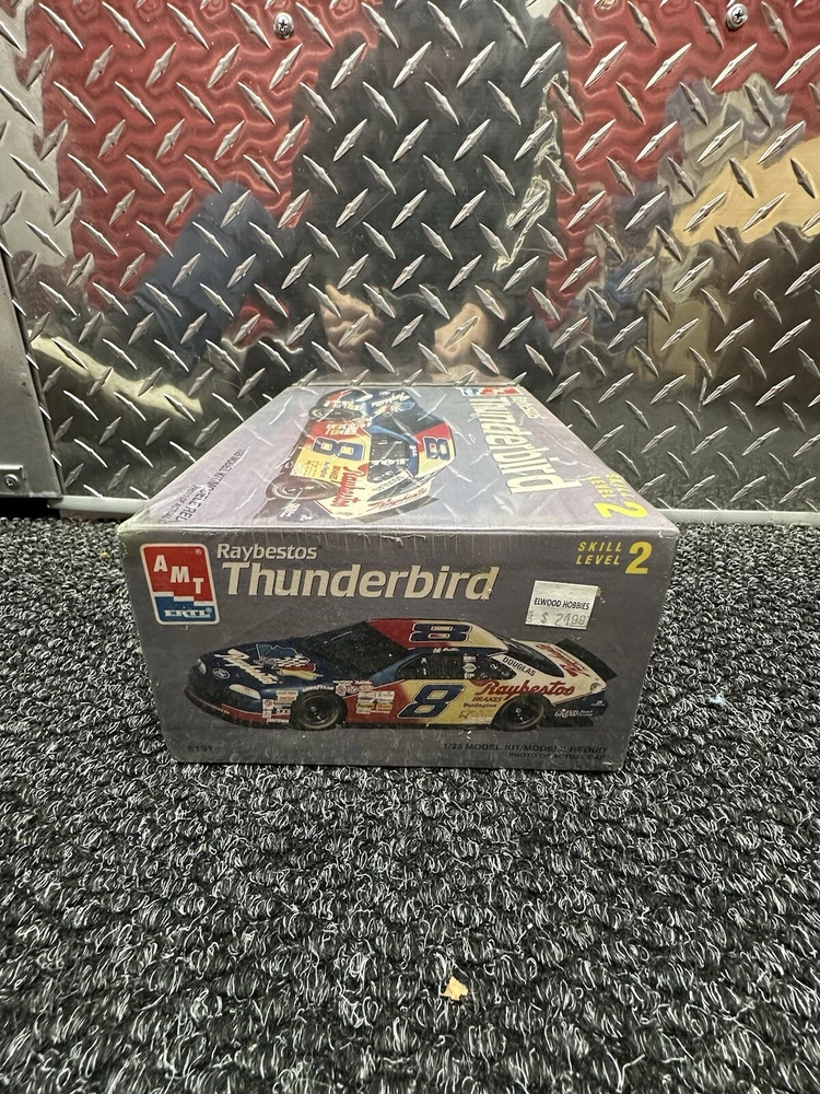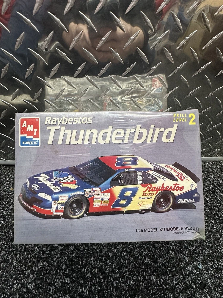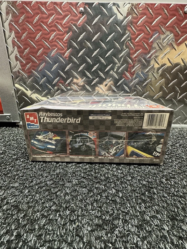 The product is a vintage AMT Ertl model kit of Jeff Burton's #8 Raybestos Ford Thunderbird. The model is sealed, indicating it has not been opened or assembled. This collectible toy falls within the Toys & Hobbies category and is a part of the Models & Kits section specifically focused on automotive models. With the brand AMT Ertl known for producing high-quality model kits, this item likely offers intricate details and accurate representations of the Ford Thunderbird race car driven by Jeff Burton.