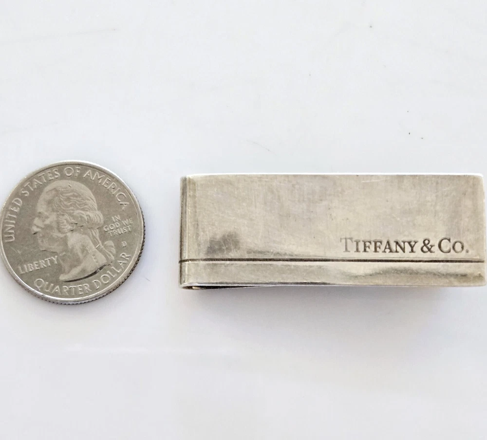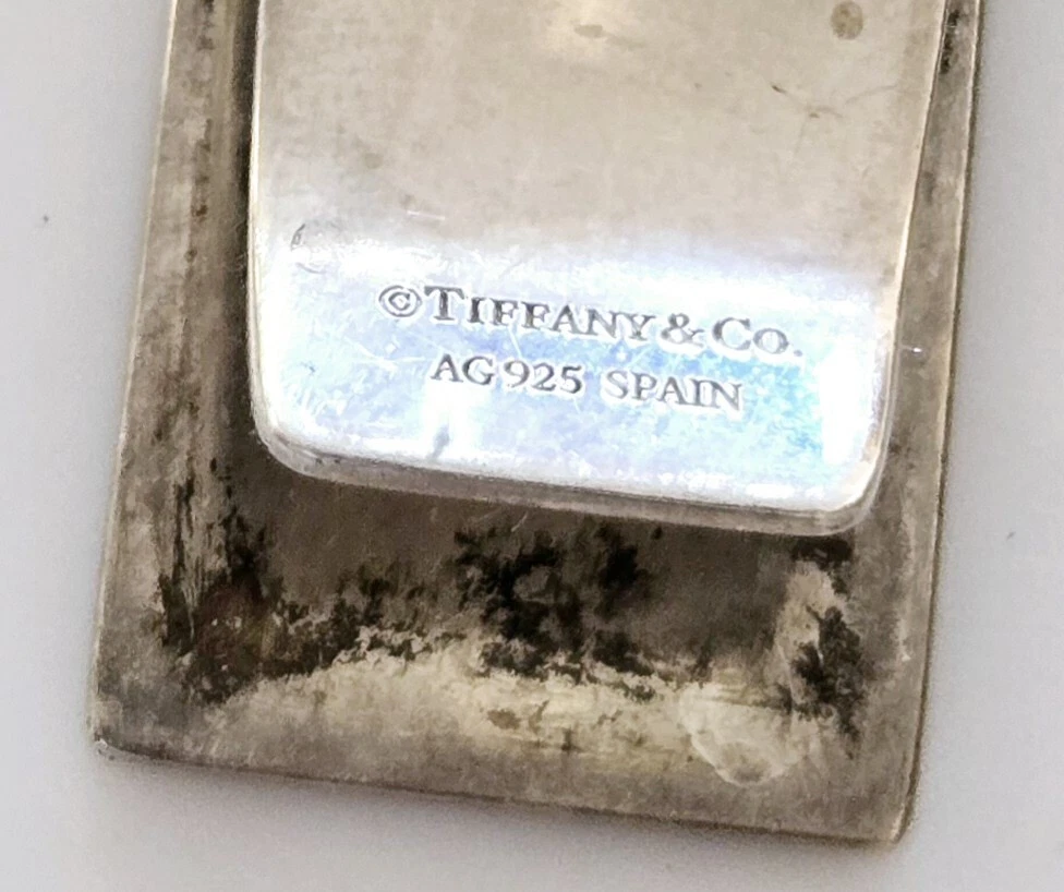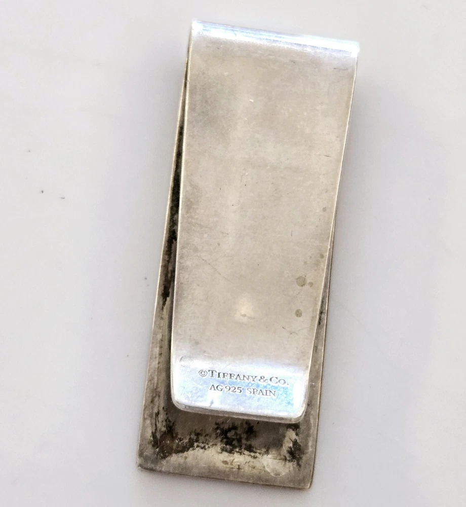 Tiffany & Co Sterling Silver "Made in Spain" .925 Money Clip Smaller VERSION SEE ALL PHOTOS 16.49 grams - Pre-Owned but in great shape, needs a good polishing up! It is marked with ORIGINAL Tiffany Marings, see photos Please bid on what you see in the photos. NO RETURNS Measures 2" long and 3/4" wide, great weight SELLING AS IS SOLID STERLING SILVER 16.49 Grams Antique - VINTAGE Selling as-is... So please see all photos Get your bids in now! Shipping is $4.95 - Great for RESALE SHOPS