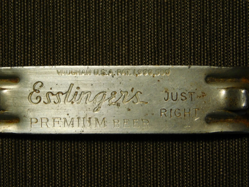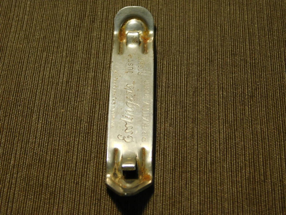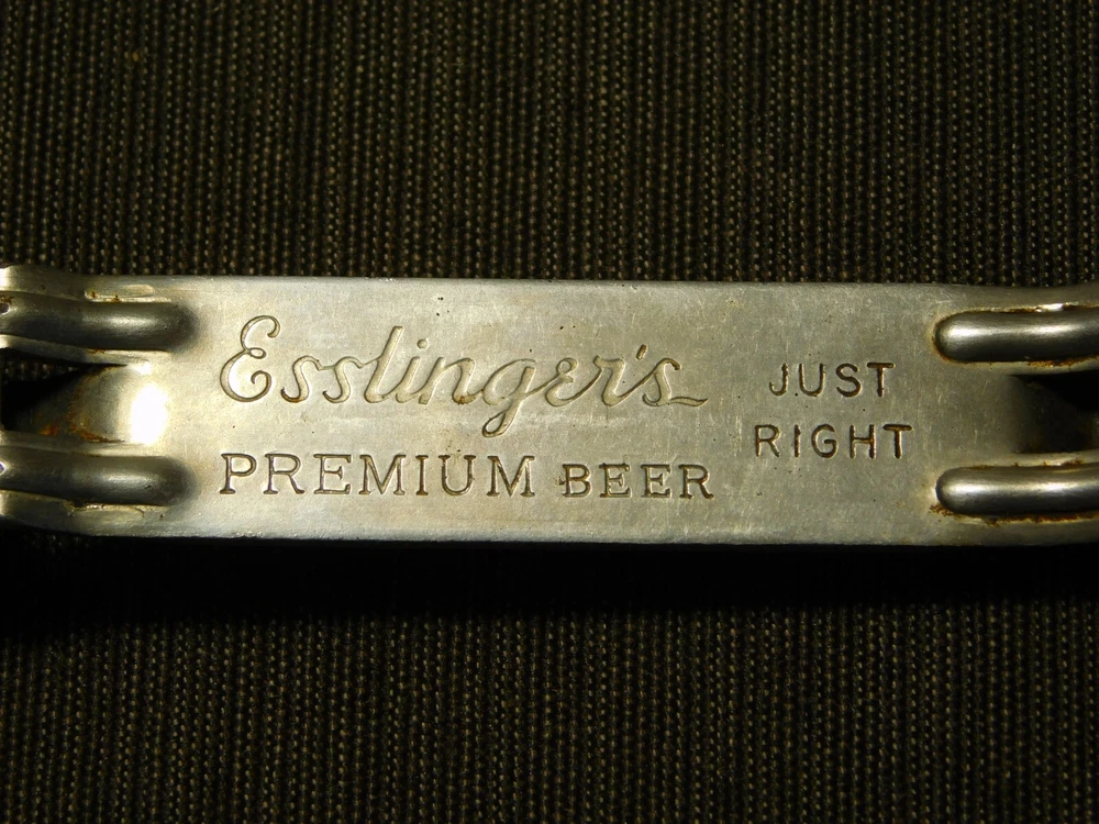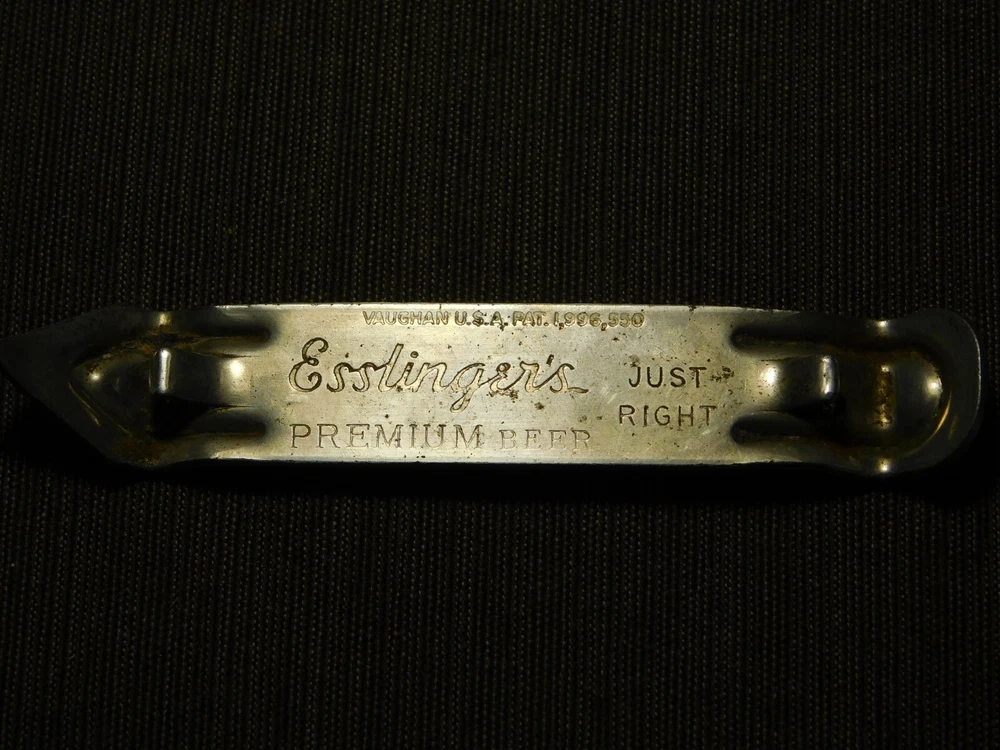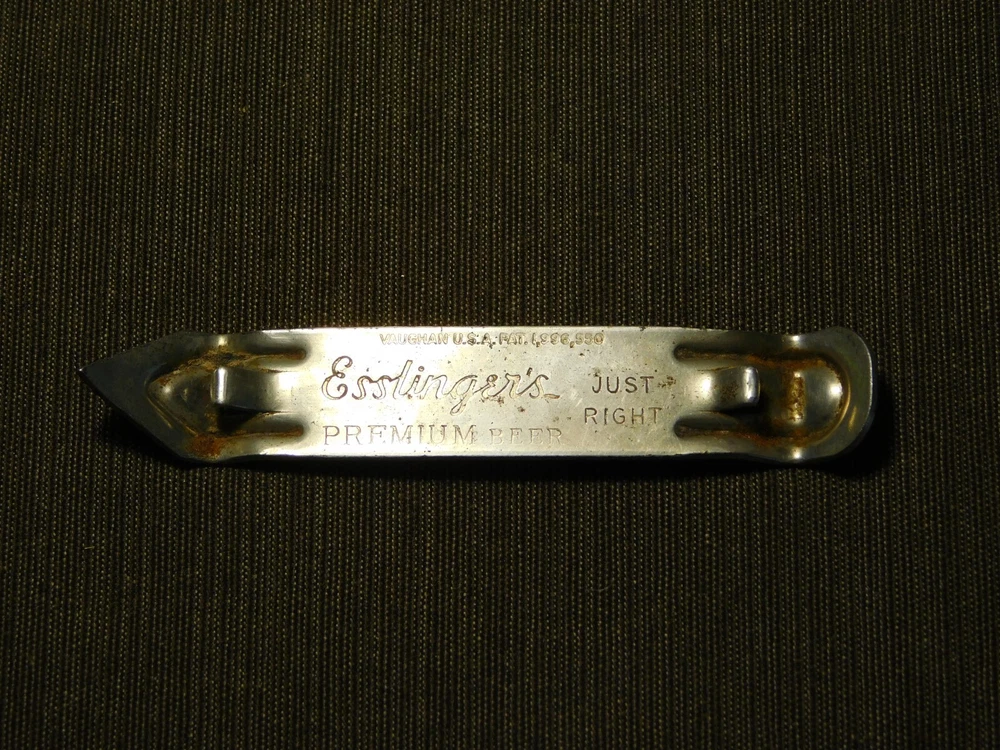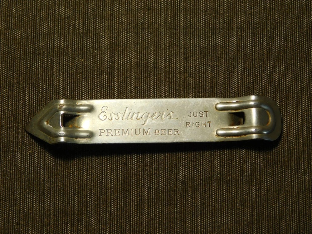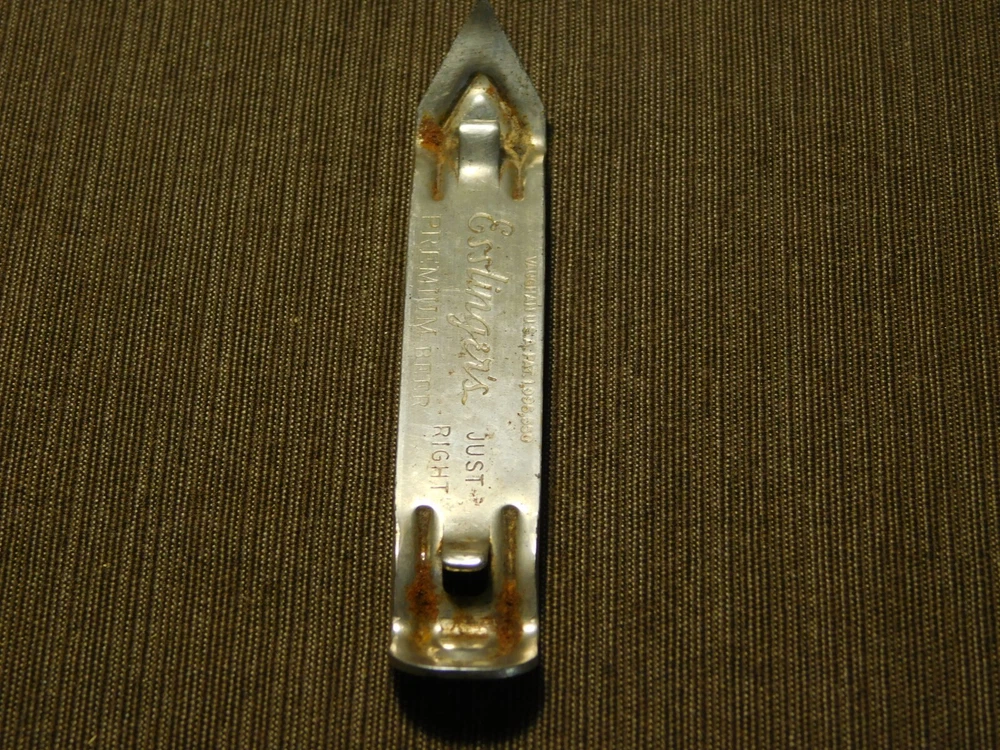 YOU ARE BIDDING ON..... VINTAGE BAR ESSLINGER'S PREMIUM BEER CAN BOTTLE OPENER ...SHOWS USAGE/AGE WEAR..HAS SCRATCHES/PAINT LOSS/AGE DISCOLORATION.... .. . PLEASE VIEW PHOTOS FOR CONDITION.***PLEASE E-MAIL IF YOU HAVE A QUESTION OR WANT AN ADDITIONAL PICTURE....PLEASE VISIT MY EBAY STORE FOR ADDITIONAL VINTAGE ITEMS..THANK YOU***11W-BX4848-prenv1111