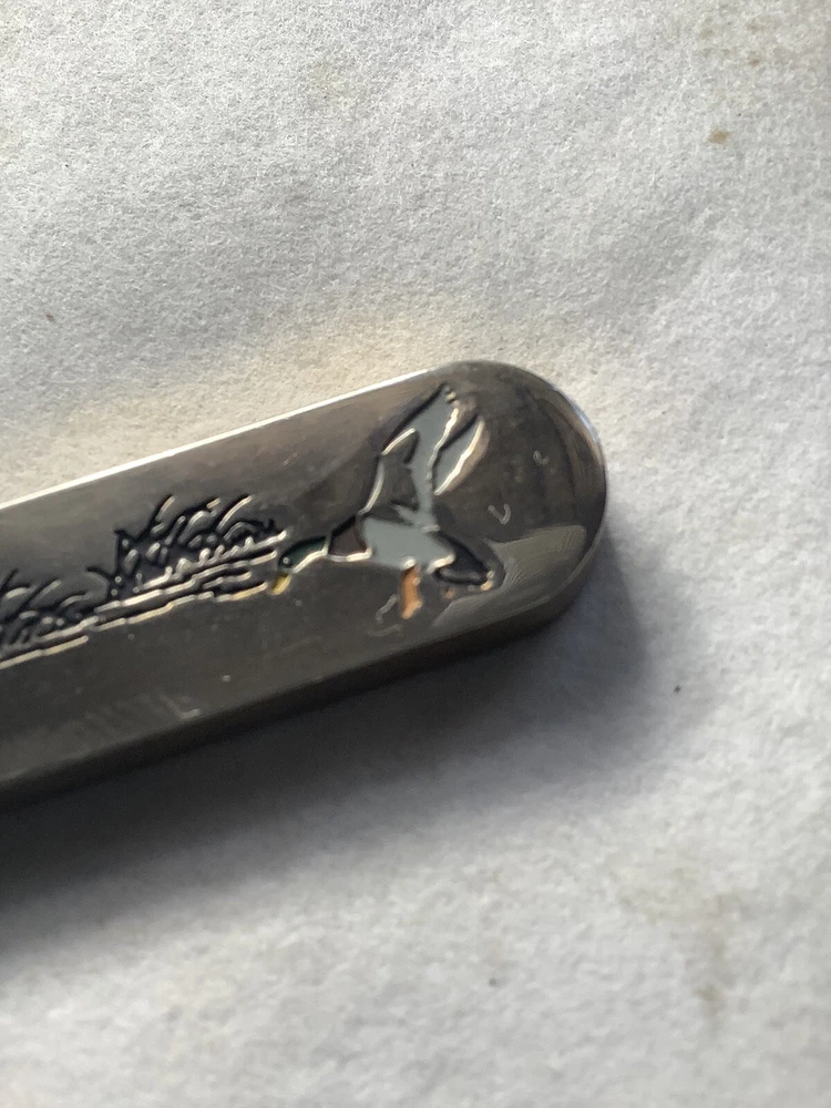 Up for bid is this great old brass letter opener with ducks in payed in pearl, great shape for age. I am a reseller! not a collector, so I might get something wrong in item description. Please use pic,s for best description, I try to take up close pics, But I strive to give accurate details so you are confident in bidding! See my knife feedbacks! I ship fast, reuse boxes to ship costs down, if you win multi auctions, wait till I invoice you with a shipping discount, then pay for items, Any questions please ask, Happy Bidding!! God Bless the USA!! SEE MY OTHER AUCTIONS FOR MORE ITEMS! Dave