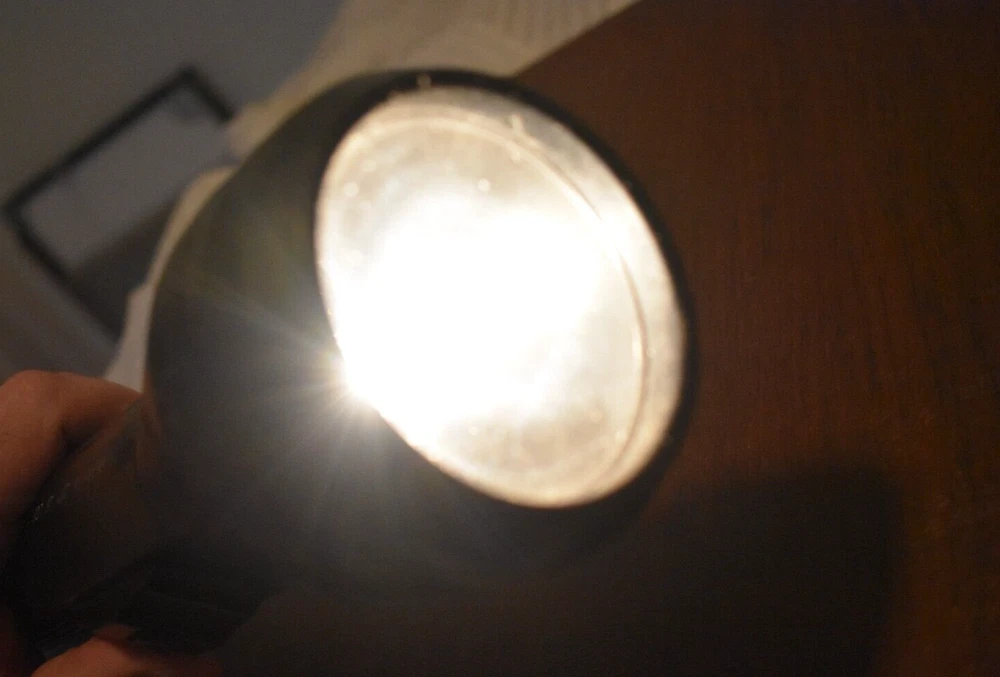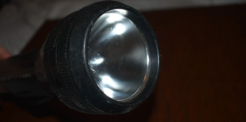 This vintage BrightStar 6900 flashlight is a must-have for any camping or hiking enthusiast. Made in the United States, this flashlight features a durable plastic design and a powerful incandescent lighting technology. It requires 5 D batteries to power its bright light, making it perfect for any outdoor adventure. With a 16'' length, this flashlight is easy to handle and provides ample light for any task. Its black color adds a sleek touch to its design, making it a stylish addition to any camping or hiking gear. Don't let the darkness stop you from exploring the great outdoors - this vintage BrightStar flashlight has got you covered. Batteries are dim and may need replaced so they will not be included. Scratches and scuffs present, still a tough us able light. Packed well and shipped fast.