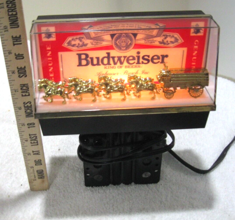 HELLO YOU ARE BIDDING ON A VINTAGE BUDWEISER ADJUSTIBLE HAS 2 SCREW THAT HOLDS IT IN PLACE THEN IT CAN TILT UP OR DOWN LIGHT LIGHTED BEER COLLECTOR MAN CAVE SIGN WORKS WORKS AS SEEN S89 12/24 PLEASE LOOK AT MY OTHER AUCTIONS I WILL GLADLY COMBINE ACTUAL SHIPPING PLEASE WAIT FOR AN INVOICE OR I CAN NOT COMBINE