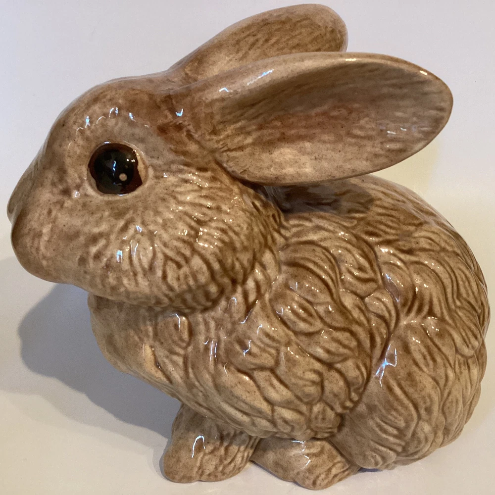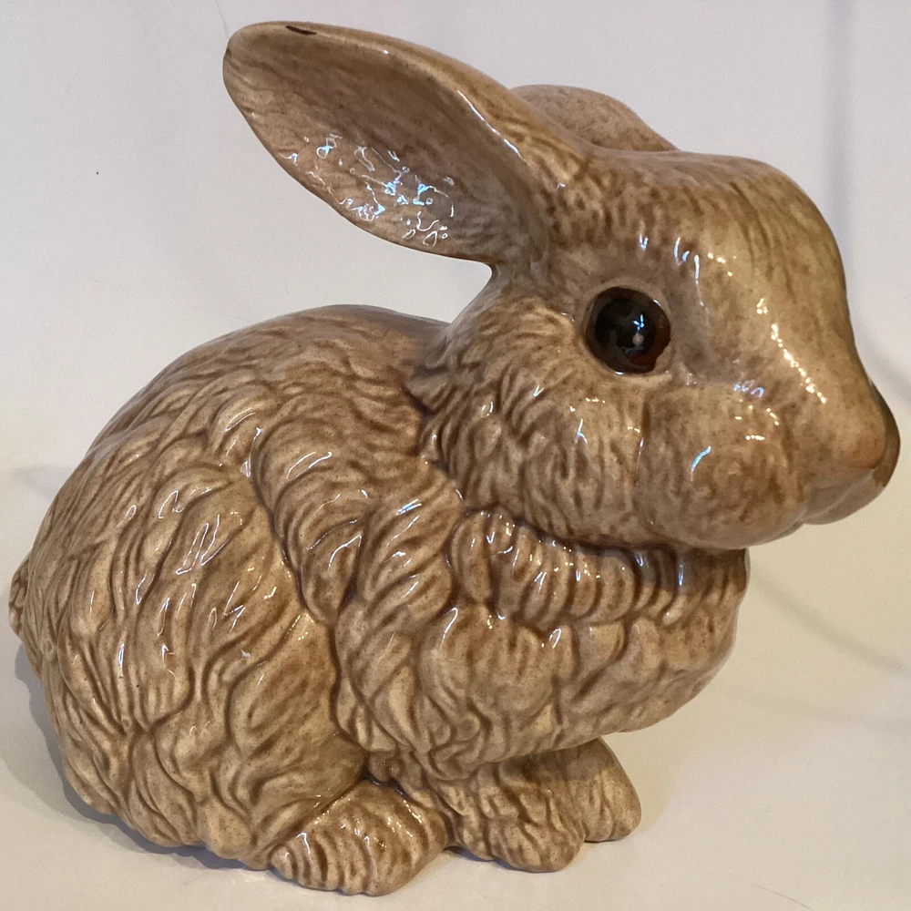 ADORABLE PORCELAIN / CERAMIC BUNNY RABBIT MADE IN 1981. BROWN. IT IS 8 INCHES WIDE AND 7 1/4 INCHES HIGH. GREAT CONDITION.