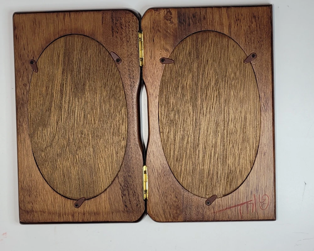 VINTAGE CARVED WOODEN DOUBLE PHOTO FRAME HINGED FITS 3.5 X 6" Photcraft