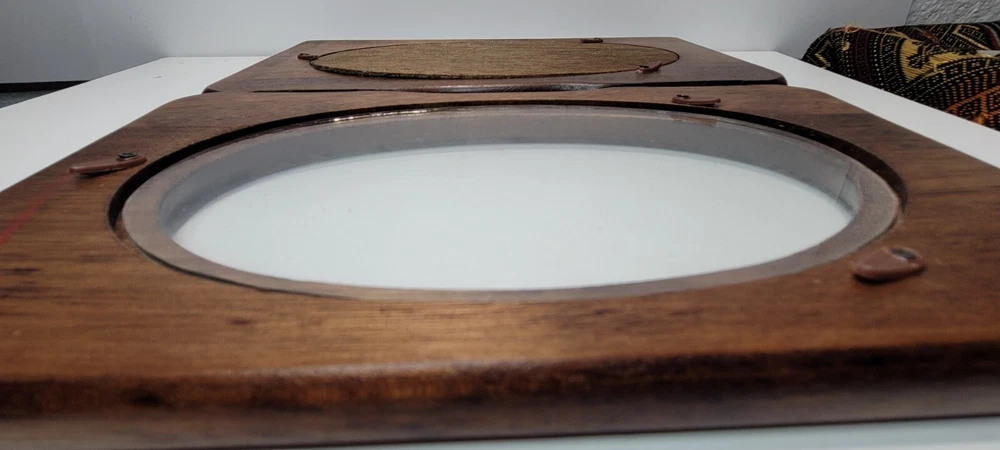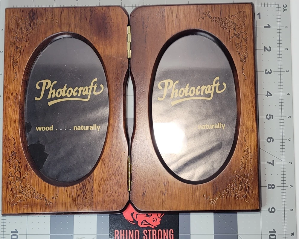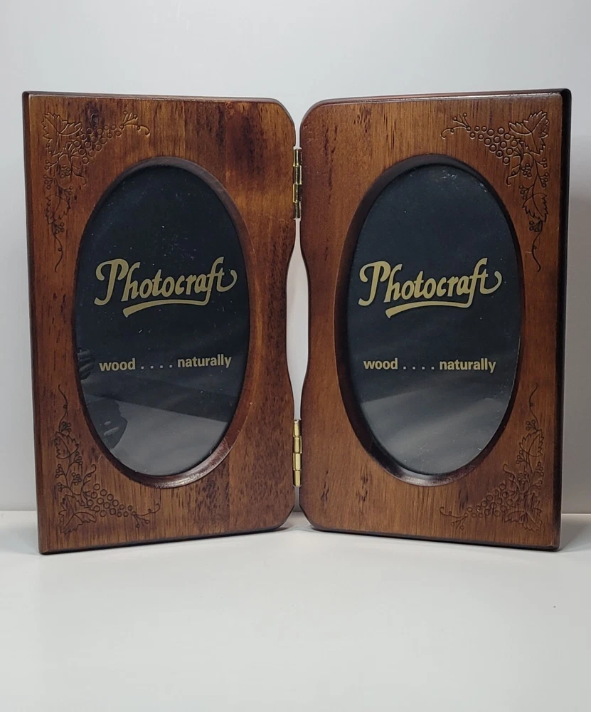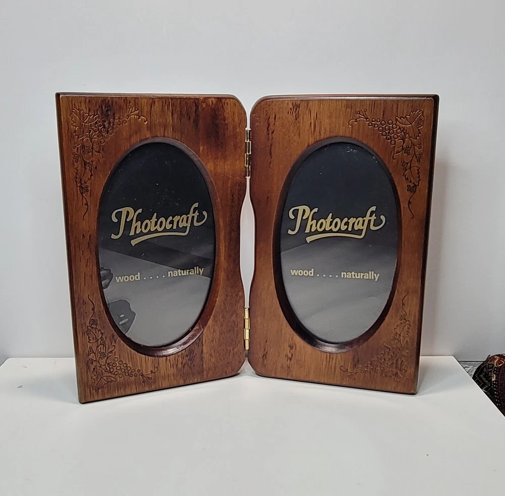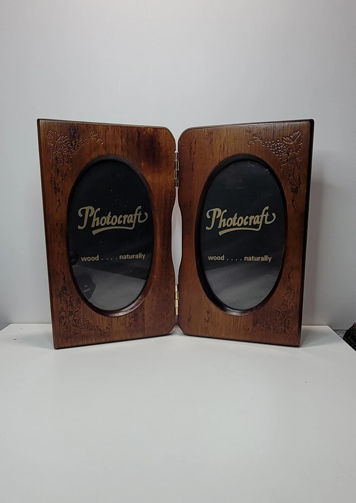 Item Height: 9 in Style: Rustic/Primitive Item Length: 11 in Mounting: Free Standing Color: Brown Shape: Rectangle Photo Capacity: 2 Material: Wood Photo Insertion Type: Rear-Loading Brand: PHOTOCRAFT Time Period Manufactured: 1980-1989 Pattern: Structured Era: Late 20th Century (1970-1999) Glass Type: Clear Glass Department: Adults Occasion: All Occasions Country/Region of Manufacture: Unknown Item Width: 1/2" Features: hinged Theme: Americana Suitable for Photo Size: 3.5 x 5 in Type: Photo Frame