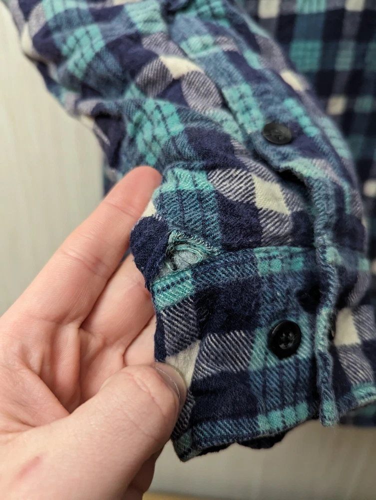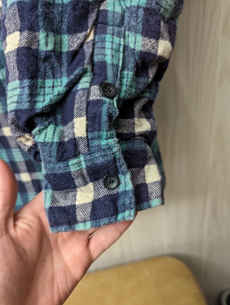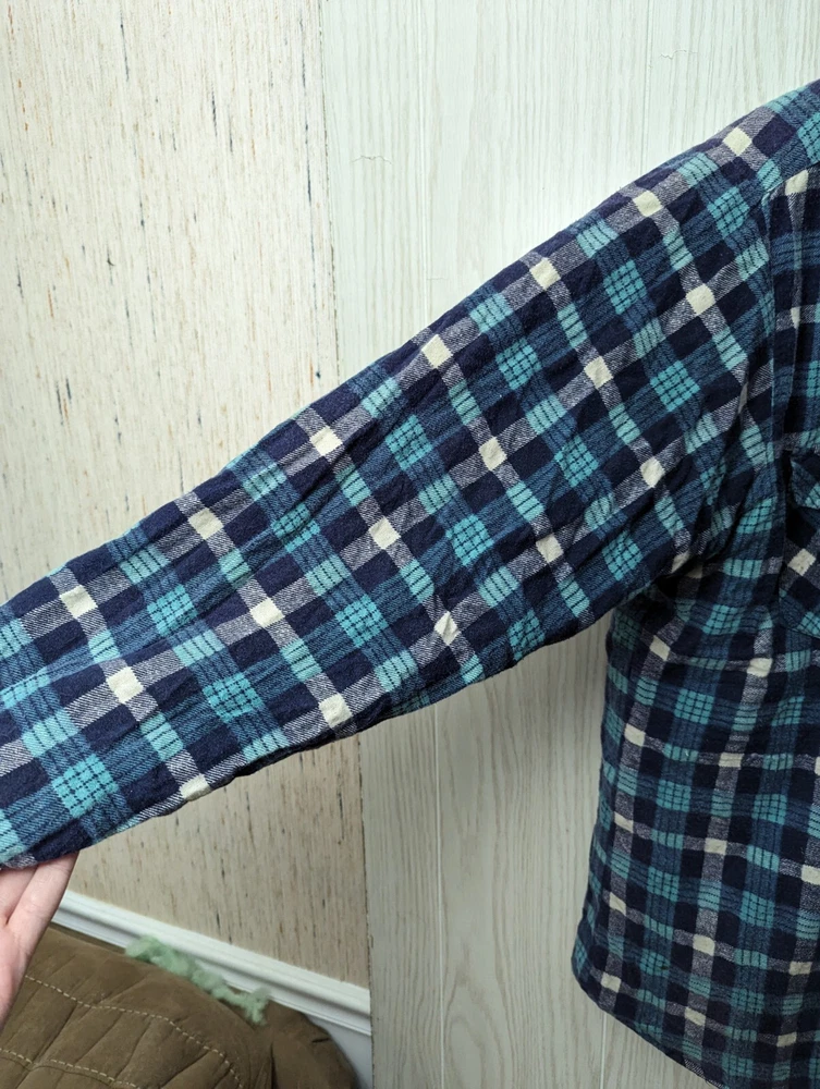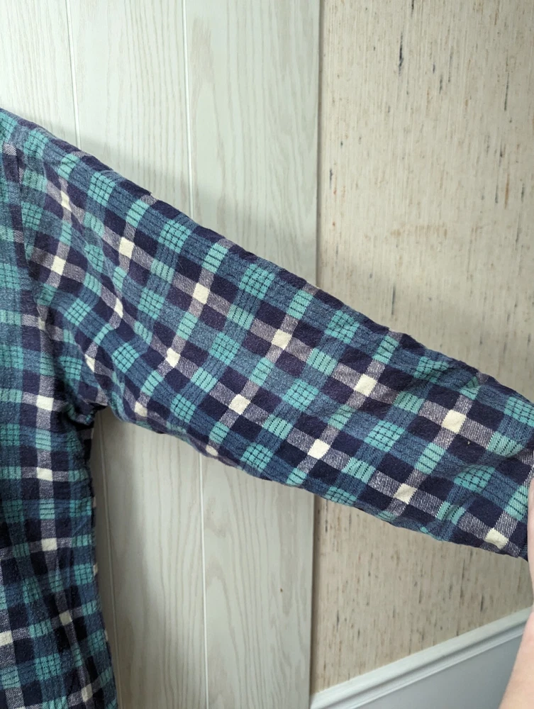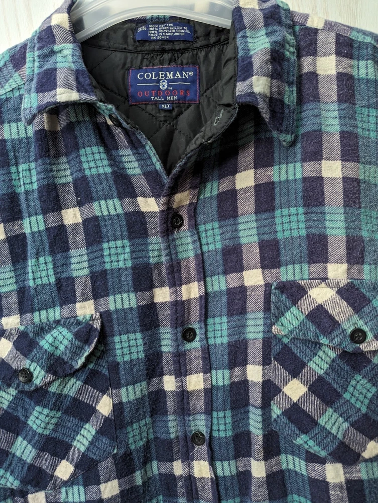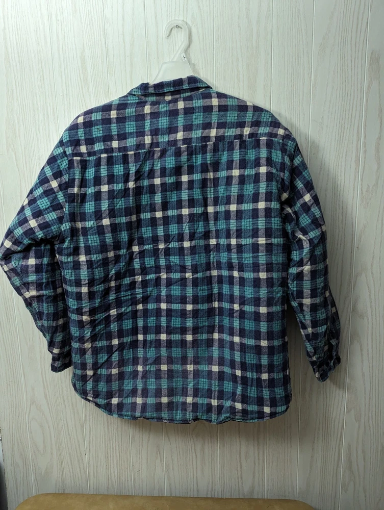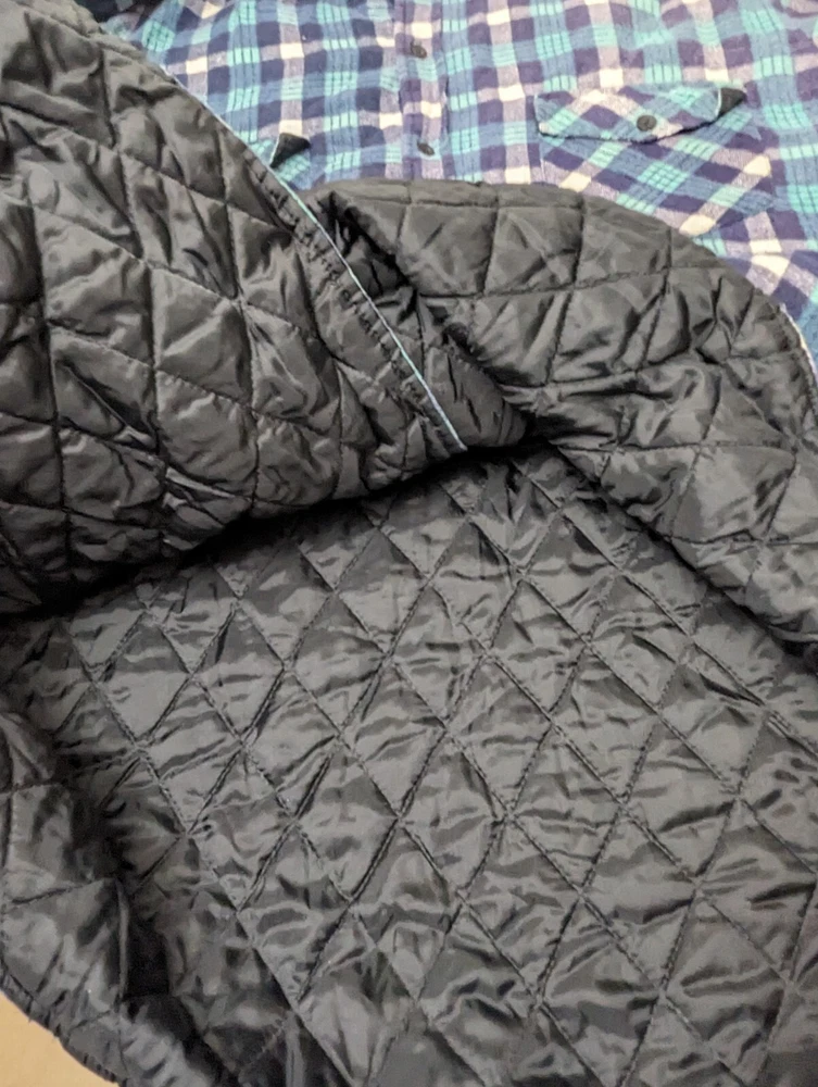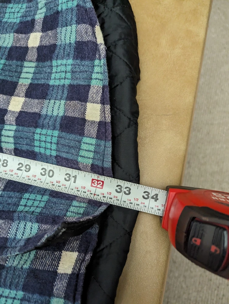 This is a tall XL so I included measurements in the pictures Here are the noticed flaws: Thread has come loose towards the end of one sleeve causing a small hole. Could be sewn shut or just fabric glued There are a number of spots, brown generally, as shown. And some of the white squares have browned over the years The upper right on the item in the pictures has faded much more than the rest for some reason Other condition notes: The interior lining is still nice Item is very thick and warm