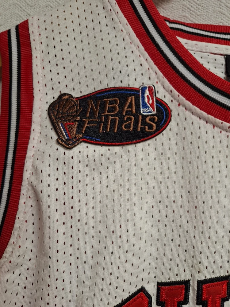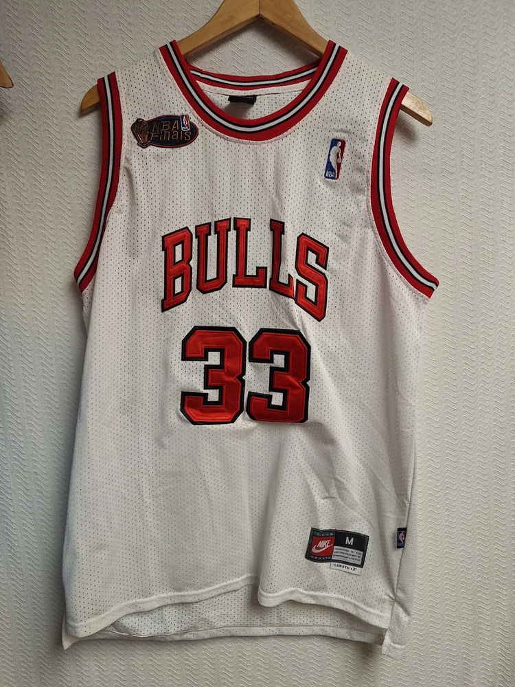 Size:MColor:WhiteGender:MenSport:BasketballBrand:NikeProduct:JerseyTeam:Chicago BullsPre & Post Season:NBA FinalsLeague:National Basketball Association (NBA)Player:Scottie Pippen