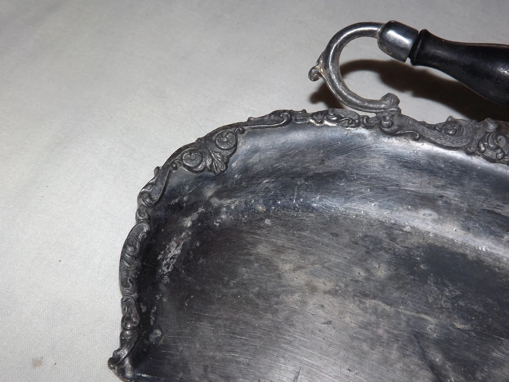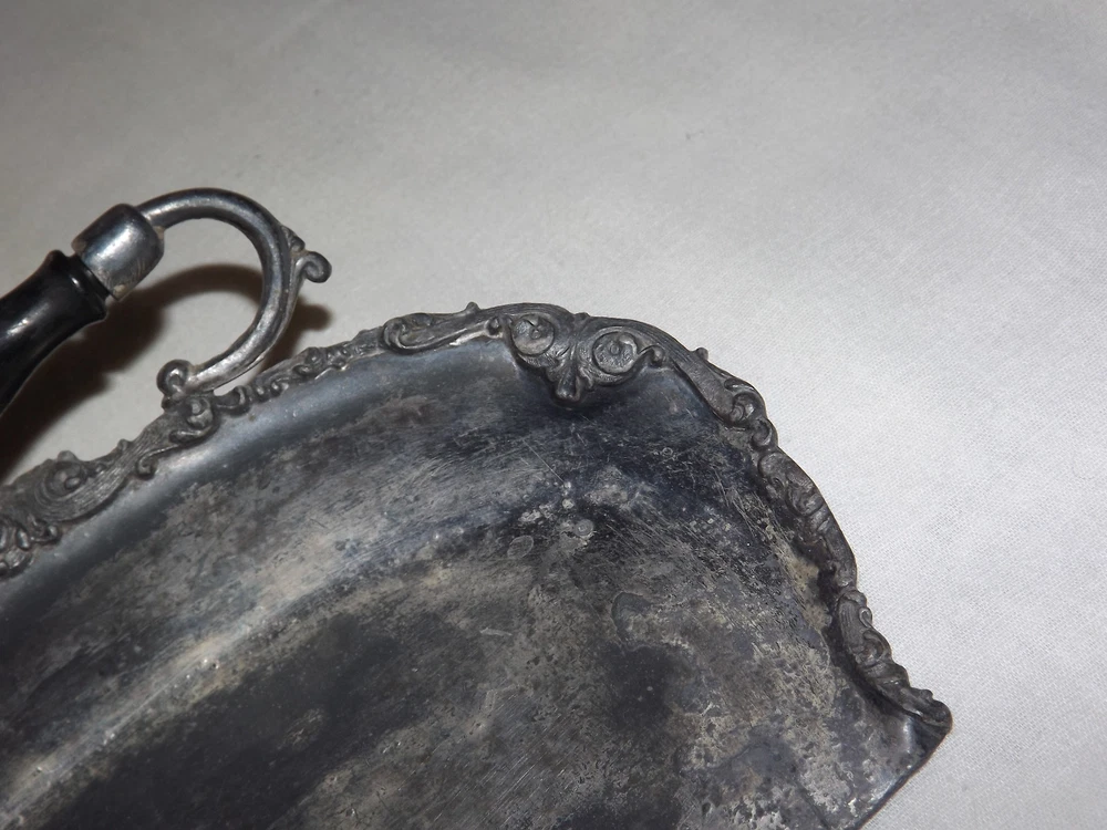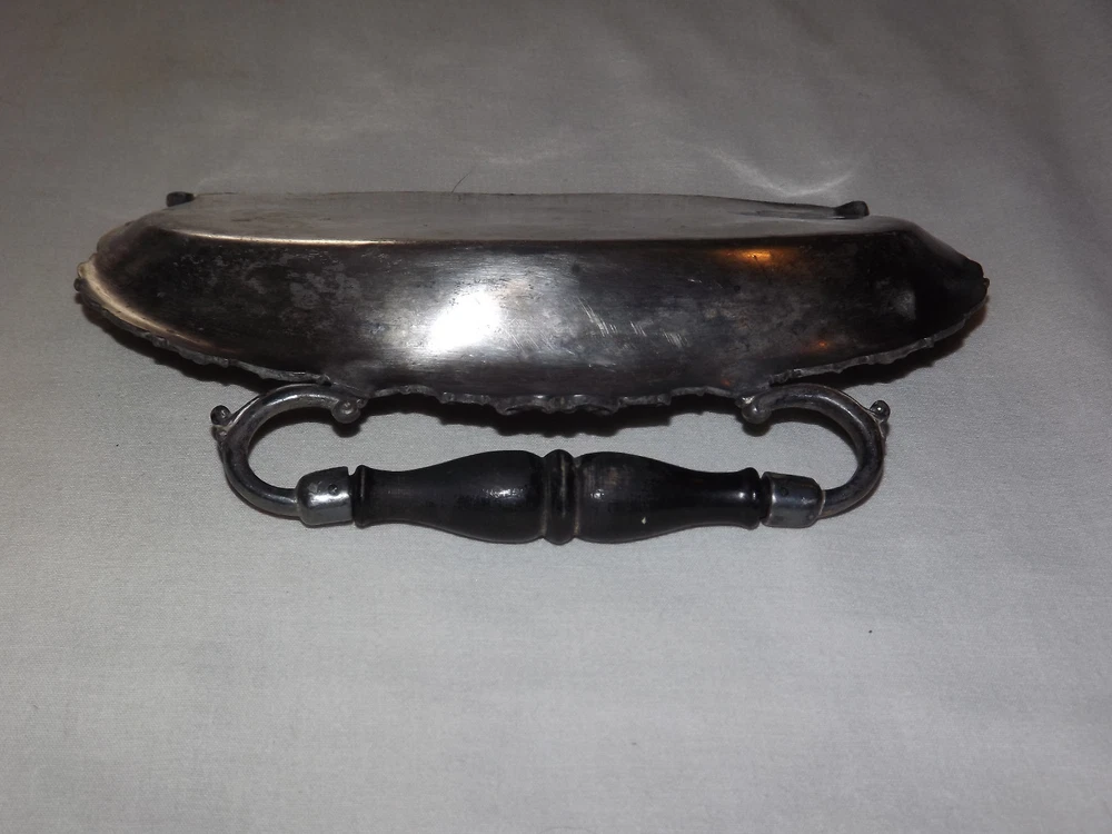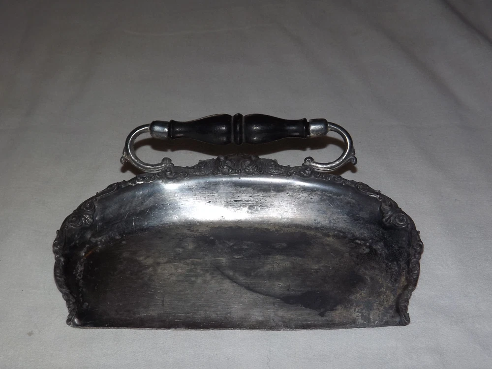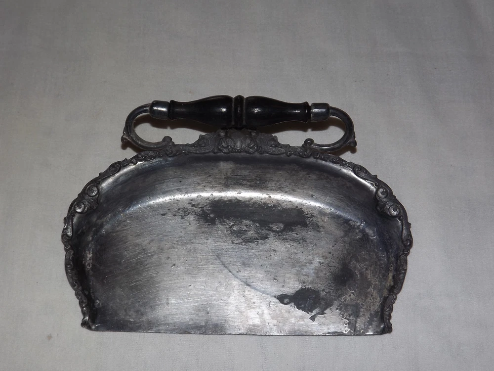 YOU ARE BIDDING ON........ VINTAGE BUTLER VICTORIAN WOOD HANDLE TABLE CRUMB SCRAPER TRAY...... ...METAL IS PLIABLE-COULD BE LEAD.. MEASURES APPROX 8" WIDE ..SHOWS A LOT OF USAGE/ HANDLING /AGE WEAR..HAS SCRATCHES/PAINT LOSS/AGE DISCOLORATION.....PLEASE VIEW PHOTOS FOR CONDITION.***PLEASE E-MAIL IF YOU HAVE A QUESTION OR WANT AN ADDITIONAL PICTURE....PLEASE VISIT MY EBAY STORE FOR ADDITIONAL VINTAGE ITEMS..THANK YOU***BX4077-1N-4119