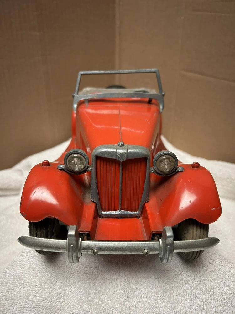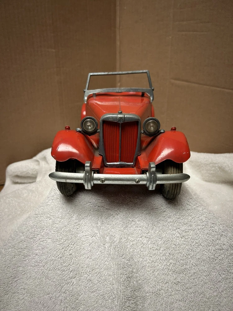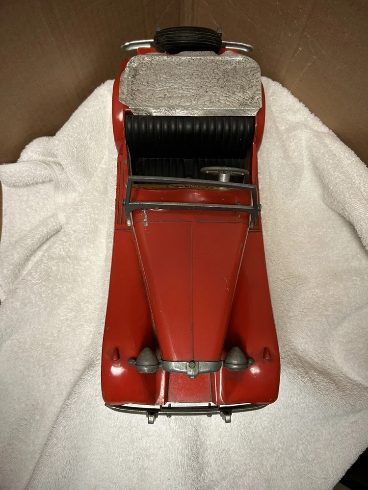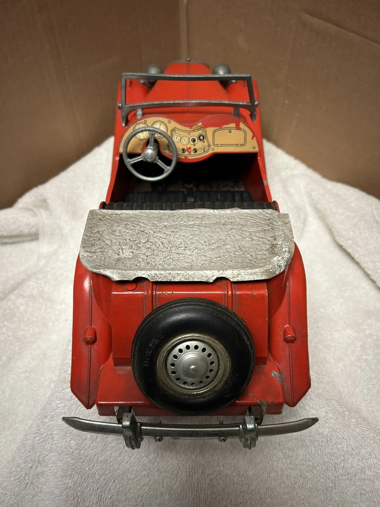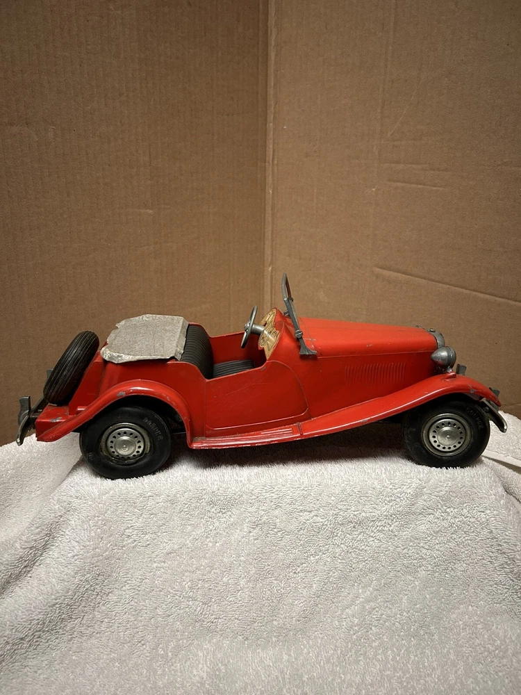 Vintage Doepke Model Toys MG. Made 1955. Approximately 15” long. Heavy and well built. Some minor paint chips and tin cover behind seat needs some straightening. Overall very good condition. See pictures.