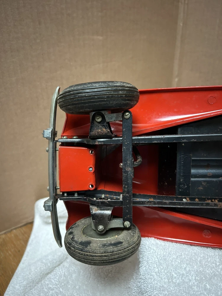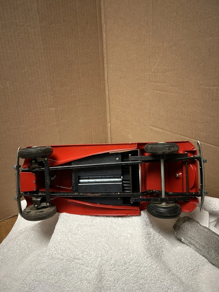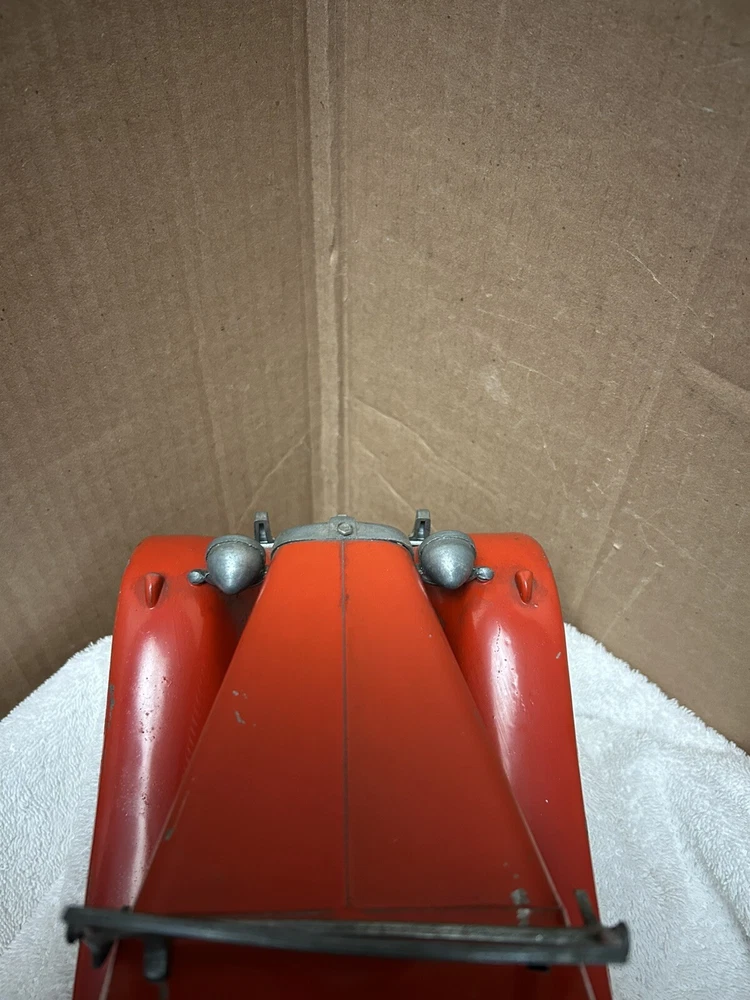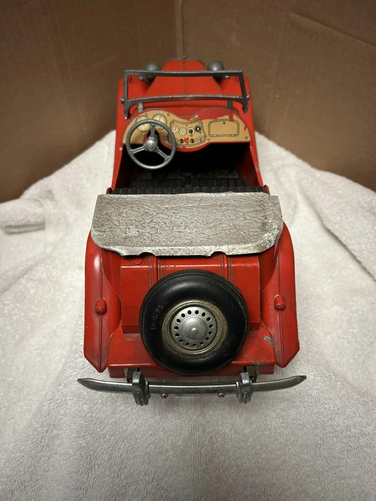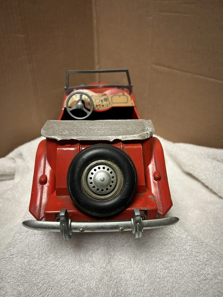 Vintage Doepke Model Toys MG. Made 1955. Approximately 15” long. Heavy and well built. Some minor paint chips and tin cover behind seat needs some straightening. Overall very good condition. See pictures.