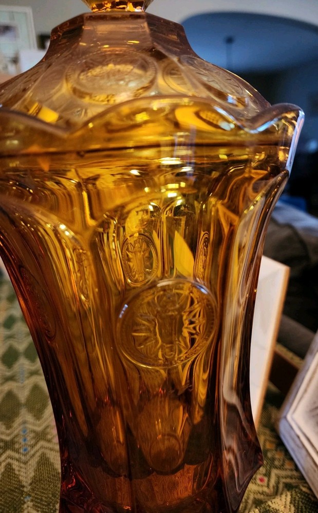 Elevate your display with the VINTAGE Fostoria Liberty Amber Art Glass Coin Design Tall Lidded Candy Dish, a stunning piece that merges functionality with artistic expression. Crafted from high-quality glass, this candy dish showcases an exquisite amber hue that adds a warm, inviting glow to any room. Its Liberty style design embodies a classic elegance, making it a timeless addition to your collection. The dish's impressive height of 13 inches commands attention while its art glass production style ensures that each piece is unique. The coin design on the lid adds a touch of historical charm, reflecting the craftsmanship of a bygone era. Whether used for special occasions or as a permanent display, this Fostoria dish is a testament to vintage artistry and sophistication.