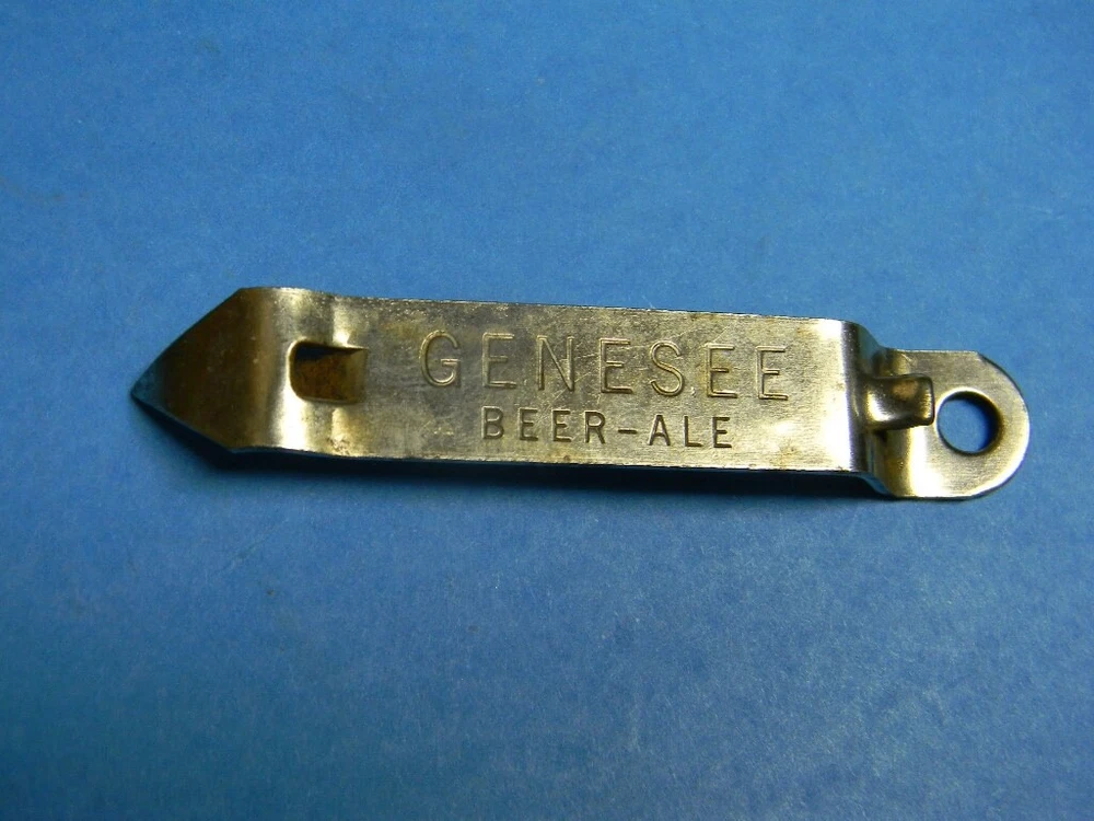 HERE IS A VINTAGE GENESEE BEER ALE BOTTLE AND CAN OPENER FROM GENESEE BREWING COMPANY IN ROCHESTER NEW YORK. MEASURES 3.5" LONG. PAYMENT MUST BE RECIEVED 3 DAYS AFTER AUCTION CLOSE. ANY QUESTIONS PLEASE ASK. INSURANCE ALWAYS RECOMENDED AND EXTRA IF YOU CHOOSE TO PURCHASE IT AND I WON'T BE HELD RESPONSIBLE FOR DAMAGES FROM THE SHIPPER IF YOU DON'T CHOOSE TO PURCHASE IT. IF YOU'D LIKE INSURANCE LET ME KNOW SO I CAN INVOICE PROPER AMOUNT. THANKS FOR LOOKING! FEEDBACK WILL BE LEFT AFTER YOU HAVE LEFT FEEDBACK AND ARE SATISFIED.