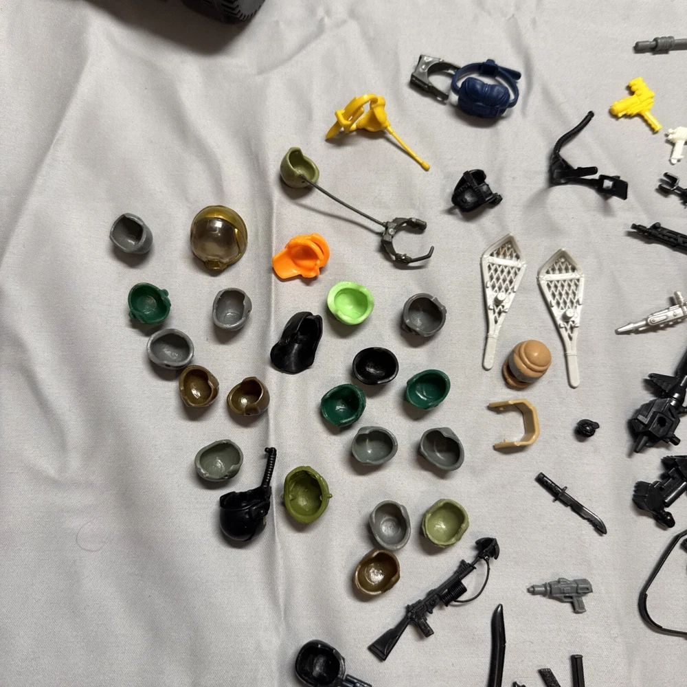 Lot of 65+ figures in good preowned condition Sold as is All figures not from same time period or set All figures have repaired elastic bands Some figures not complete 2 figures may be from McDonald’s See 2 figures have damaged crotch pieces All accessories not guaranteed to be g I Joe brand See vehicles not complete Plane in working condition. One red light not working on plane I ship every day