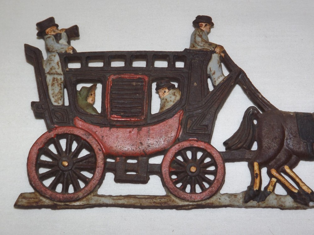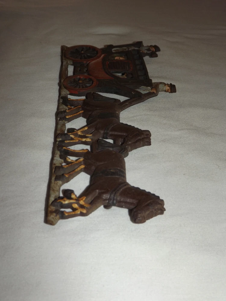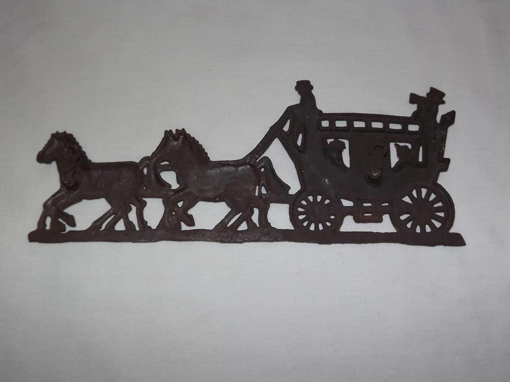 YOU ARE BIDDING ON...... VINTAGE HORSE & CARRIAGE HAND PAINTED METAL WALL PLAQUE DECORATION.... . . .MEASURES APPROX 11 1/2" LONG...4 1/2" HIGH..SHOWS DISPLAY/AGE WEAR..HAS PAINT LOSS/AGE DISCOLORATION.ONE OF THE METAL HOOKS ON BACK IS BENT...PLEASE VIEW PHOTOS FOR CONDITION.***PLEASE E-MAIL IF YOU HAVE A QUESTION OR WANT AN ADDITIONAL PICTURE....PLEASE VISIT MY EBAY STORE FOR ADDITIONAL VINTAGE ITEMS..THANK YOU*** BX6408-2N-3003-9R-0308-XXXX