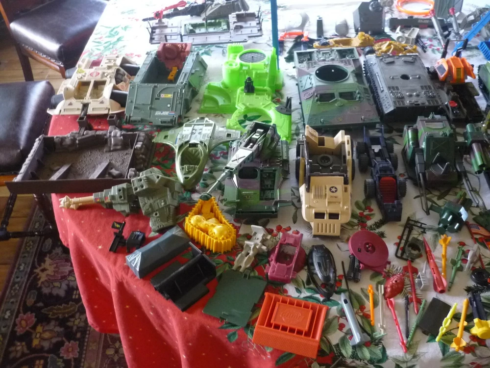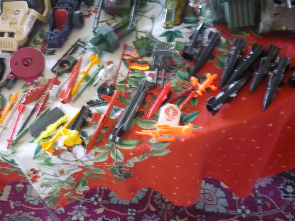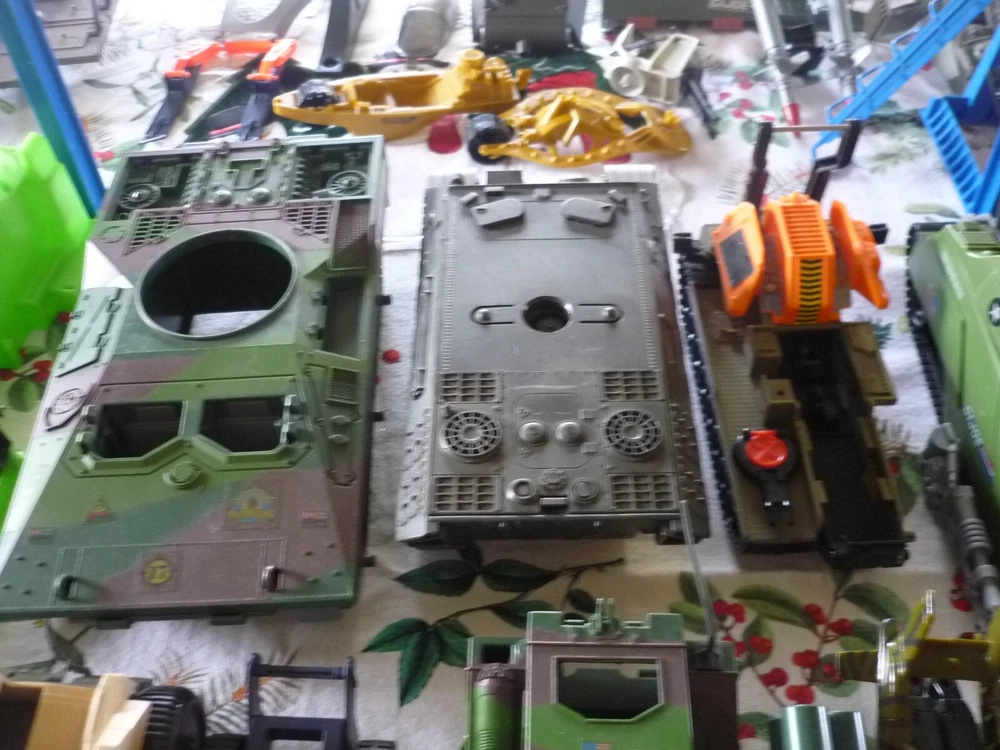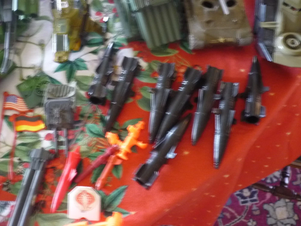 HERE IS A HUGE LOT OF GI JOE19 80'S-1990;S VEHICLES AND TANKS AND MISSILES AND AIRCRAFT AND PARTS. ALL NEED TO BE PUT TOGETHER AND ONE SMALL GREEN TANK IS NOT GI JOE. THERE IS TO MUCH TO LIST BUT YOU WILL GET ALL THAT IS IN THE PICTURES. NOT SURE HOW TO PUT THEM ALL TOGETHER. THERE MIGHT BE EXTRA PIECES OR SOME MIGHT BE MISSING. IT IS AMAZING LOT. 21 19 19 18
