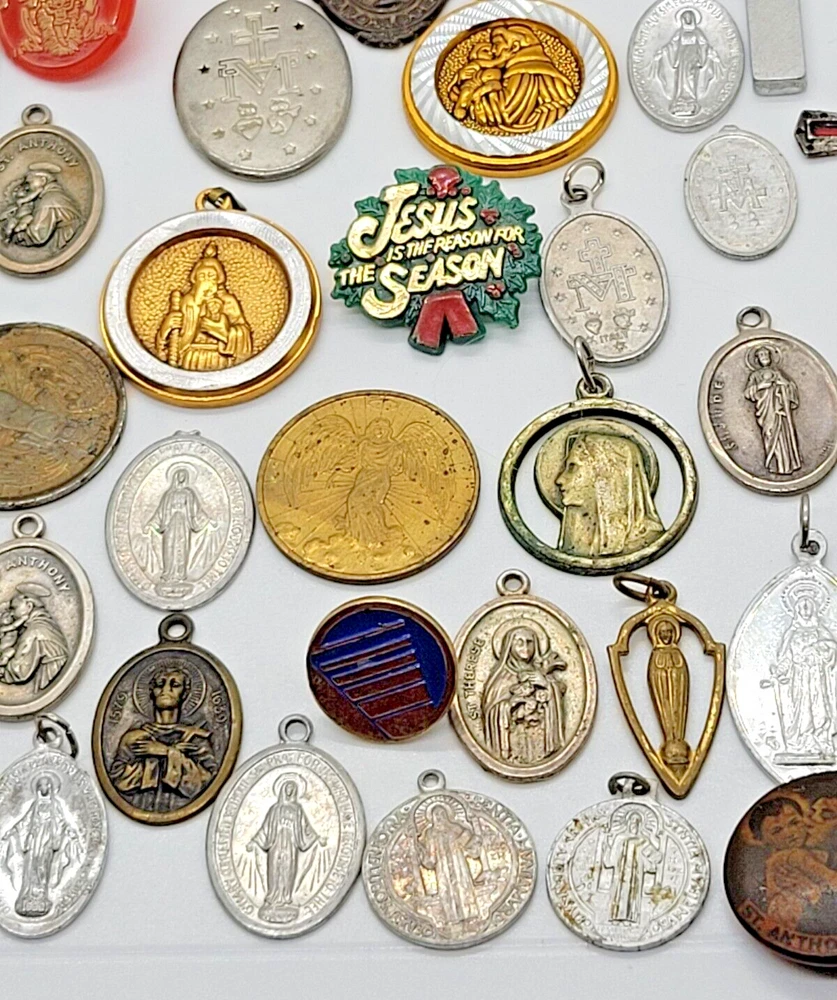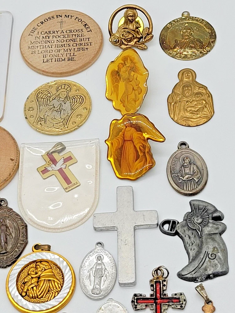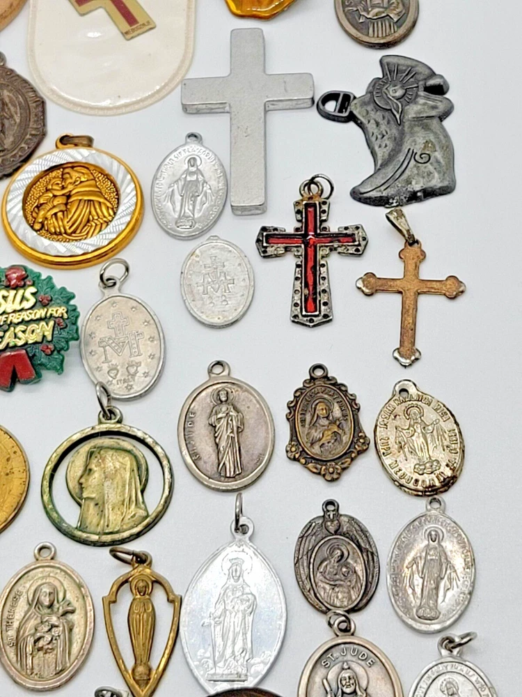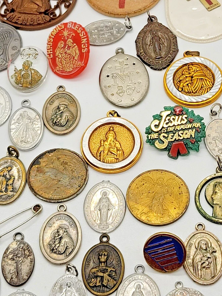 VINTAGE HUGE LOT OF 81 RELIGIOUS PENDANTS CHARMS TOKENS PINS