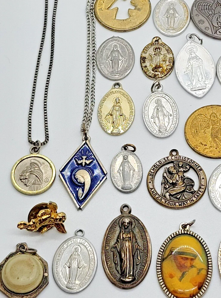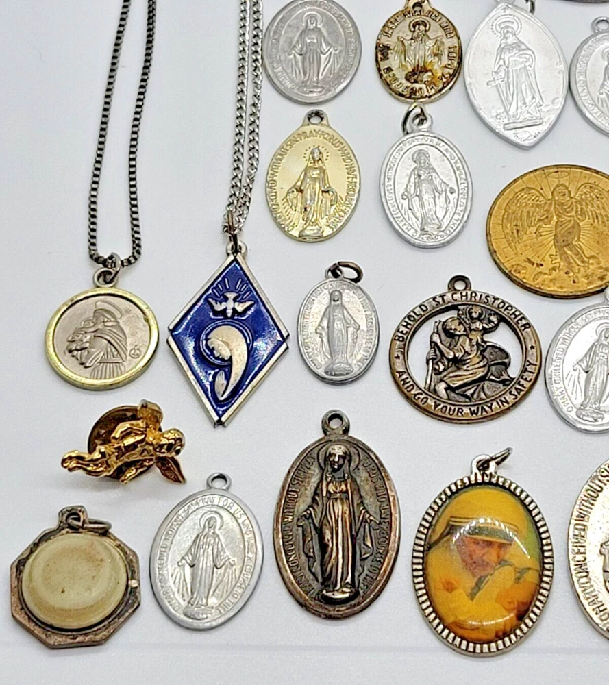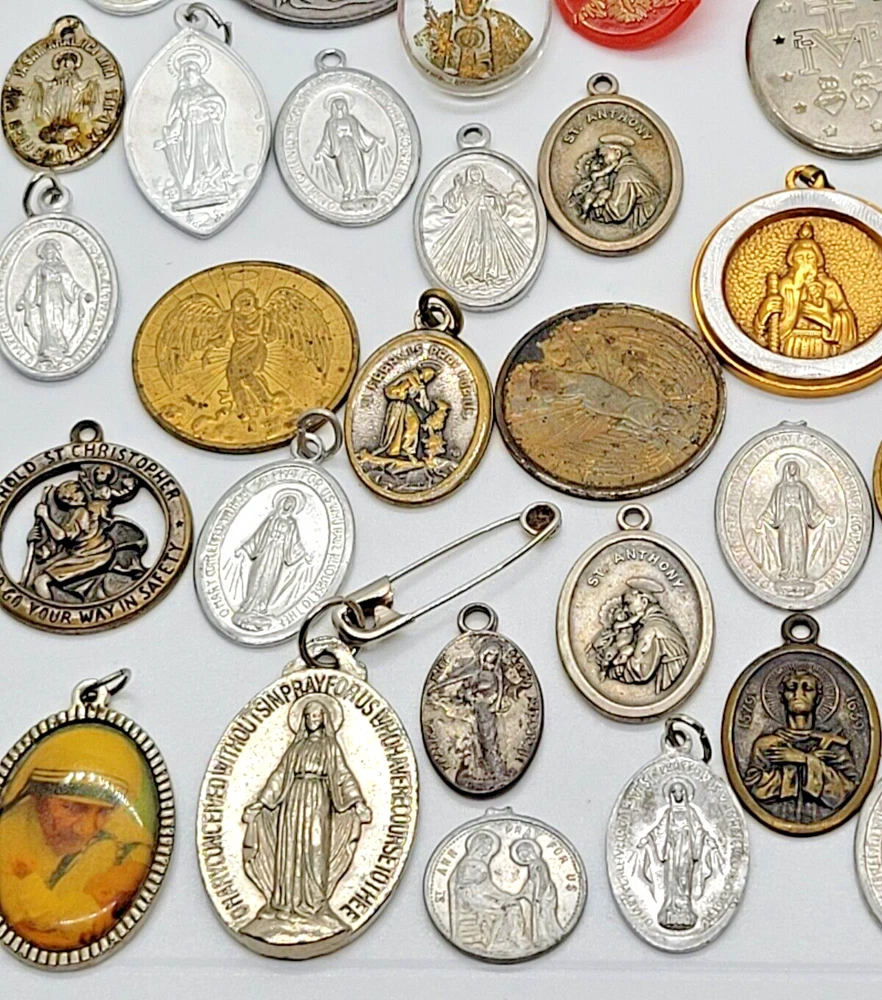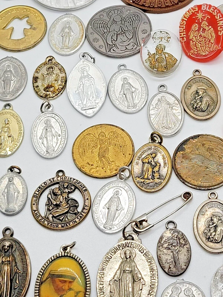 VINTAGE HUGE LOT OF 81 RELIGIOUS PENDANTS CHARMS TOKENS PINS