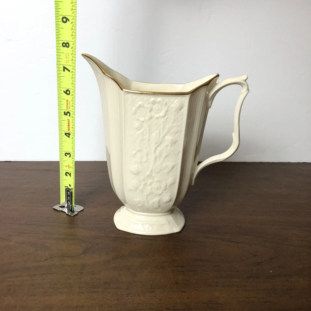 Vintage Lenox Pitcher Carolina Bisque Ivory Cream 24K Gold Trim Footed 7 1/2" Excellent pre-owned condition! No cracks or chips. Made in USA. Loose item does not come in original box! Thank you for stopping by!