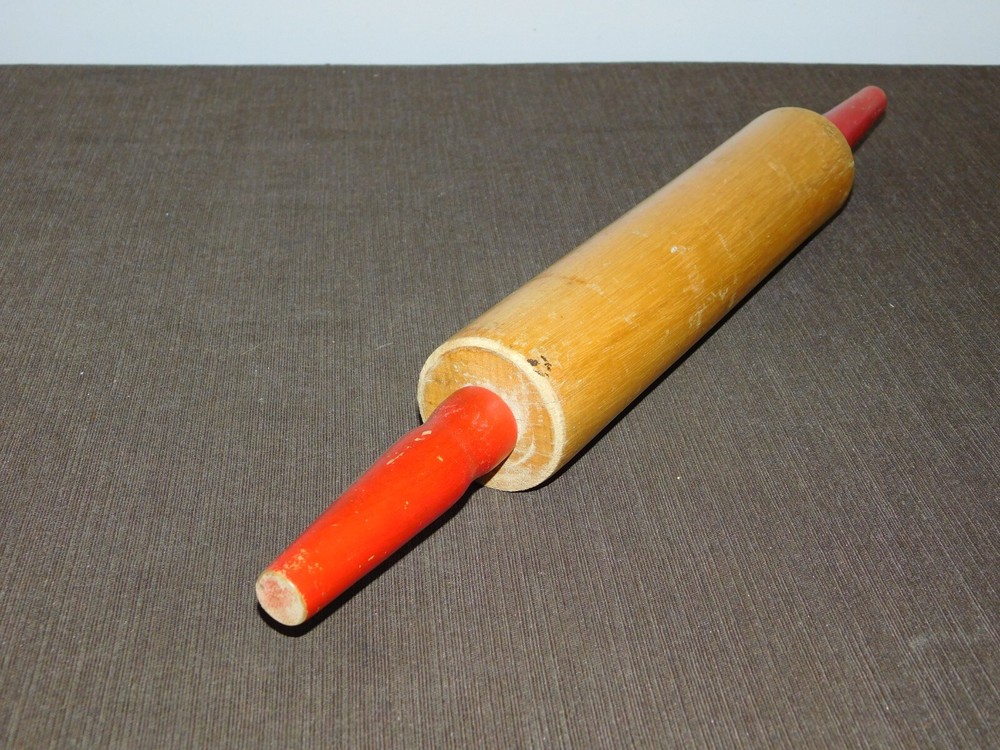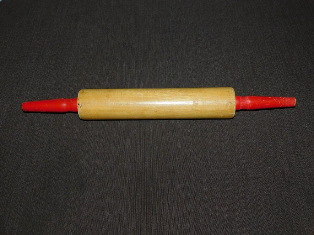 YOU ARE BIDDING ON..... VINTAGE KITCHEN 18" LONG RED WOOD ROLLING PIN . .. ..........SHOWS USAGE/AGE WEAR..HAS SCRATCHES/SCUFFS/STAINS/AGE DISCOLORATION.....PLEASE LOOK CLOSELY... PLEASE VIEW PHOTOS FOR CONDITION.***PLEASE E-MAIL IF YOU HAVE A QUESTION OR WANT AN ADDITIONAL PICTURE....PLEASE VISIT MY EBAY STORE FOR ADDITIONAL VINTAGE ITEMS..THANK YOU***1W-BX0492-XXXX