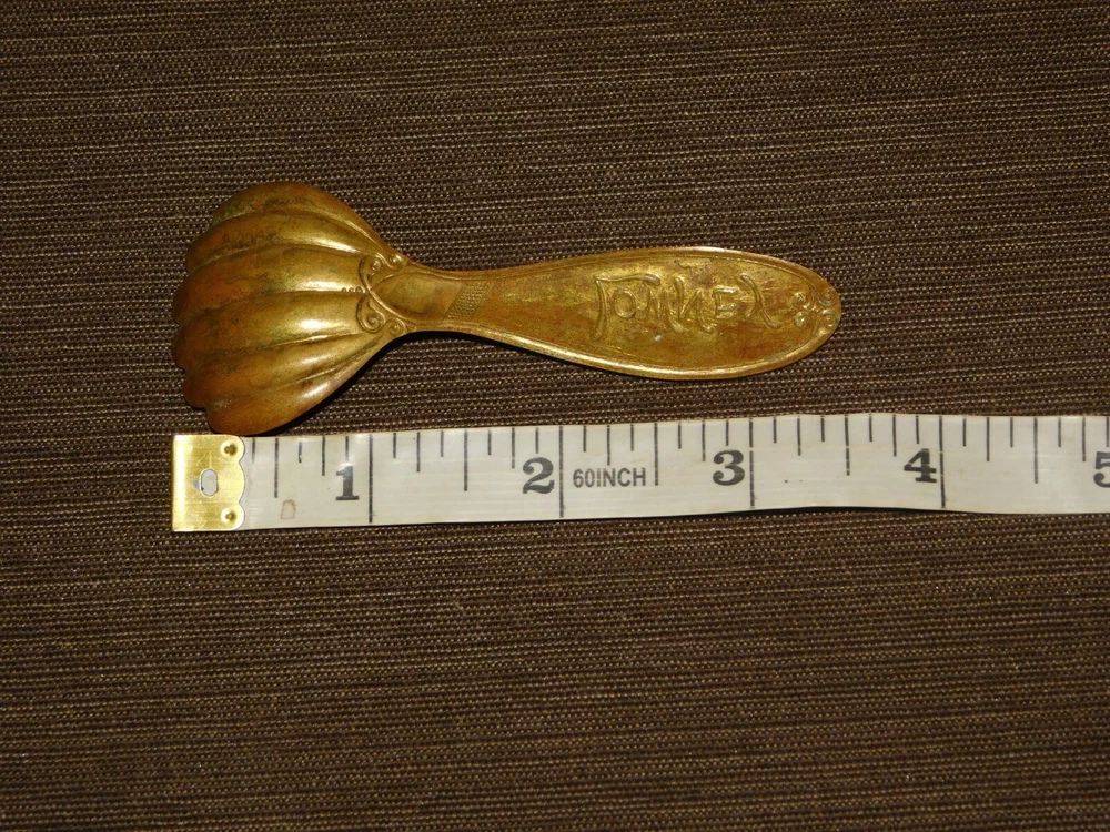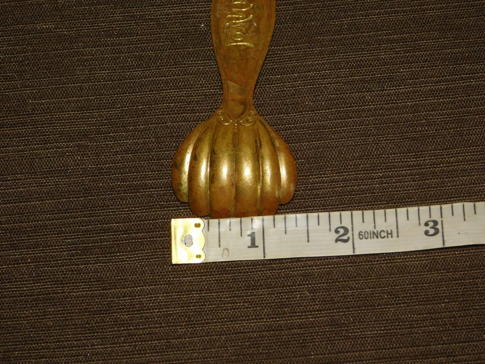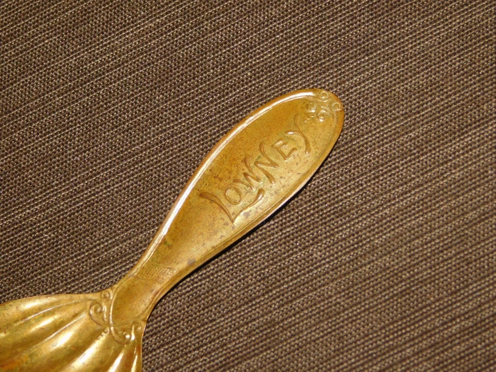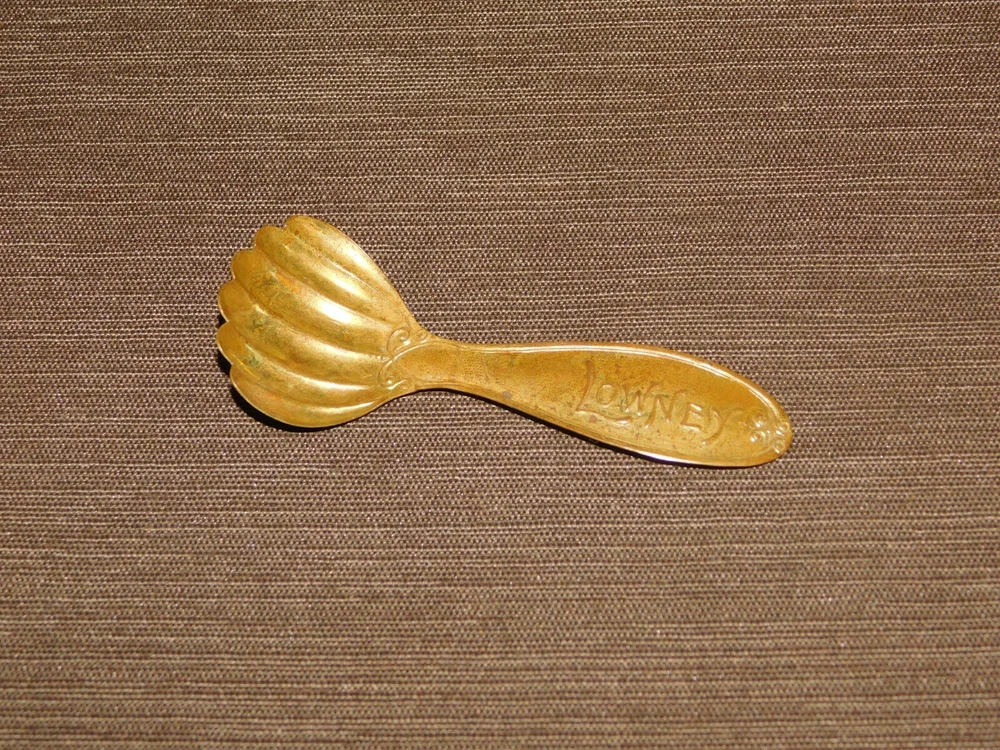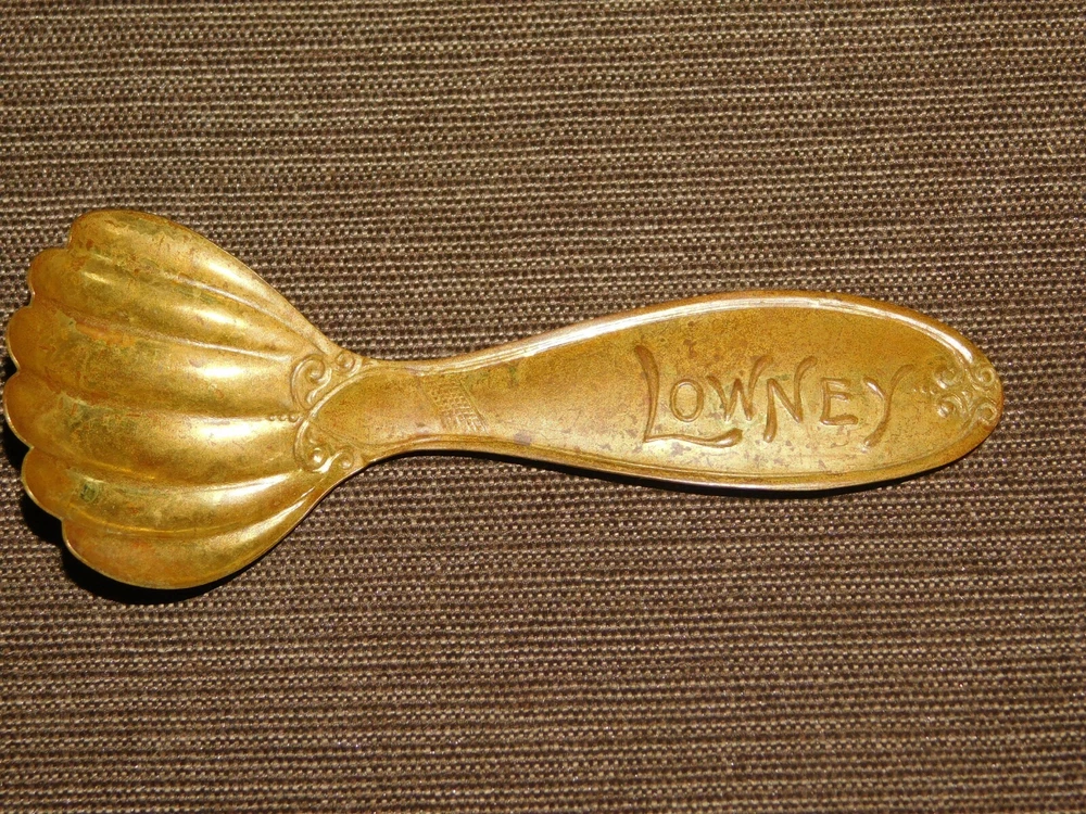YOU ARE BIDDING ON..... VINTAGE KITCHEN 3 1/2" LONG LOWNEY BRASS CANDY SERVER SERVING SPOON SHOWS USAGE/AGE WEAR HAS SCRATCHES/PAINT LOSS/AGE DISCOLORATION PLEASE VIEW PHOTOS FOR CONDITION.***PLEASE E-MAIL IF YOU HAVE A QUESTION OR WANT AN ADDITIONAL PICTURE....PLEASE VISIT MY EBAY STORE FOR ADDITIONAL VINTAGE ITEMS..THANK YOU***4VBX5859-XXXX