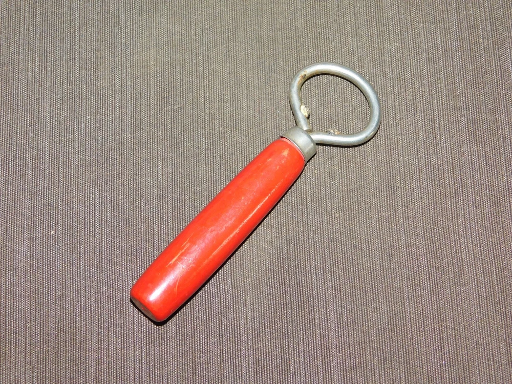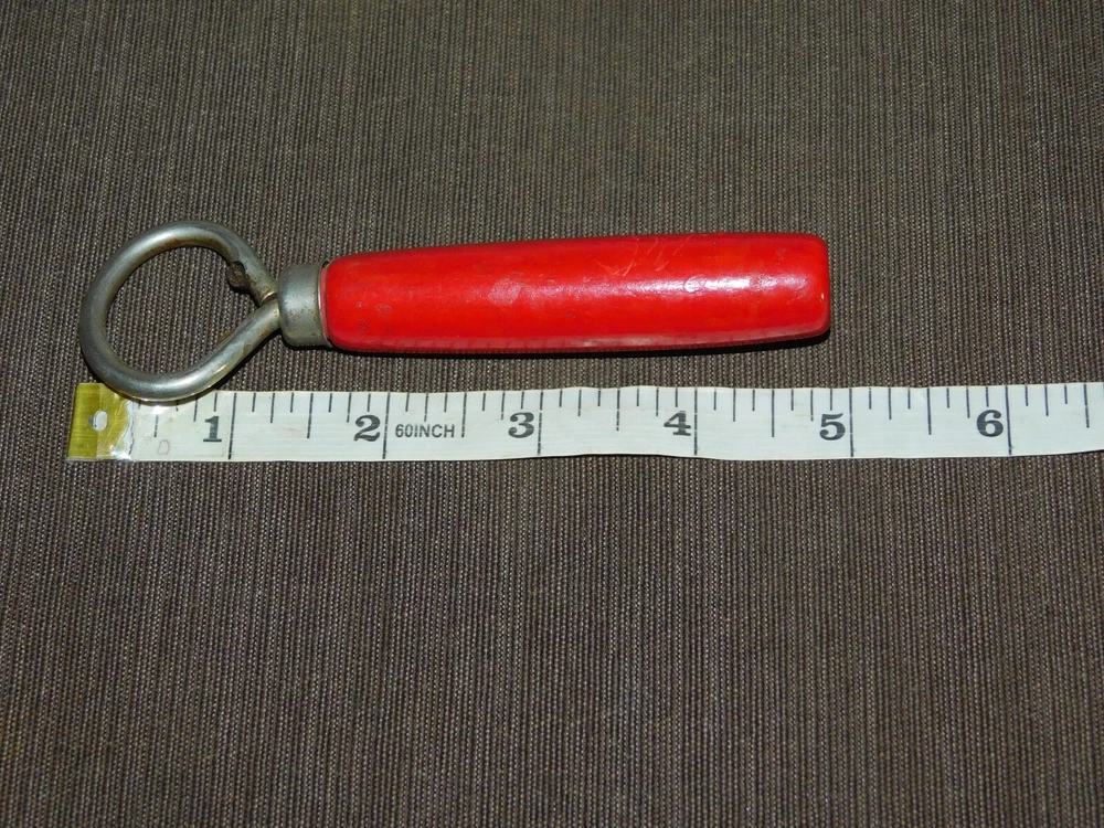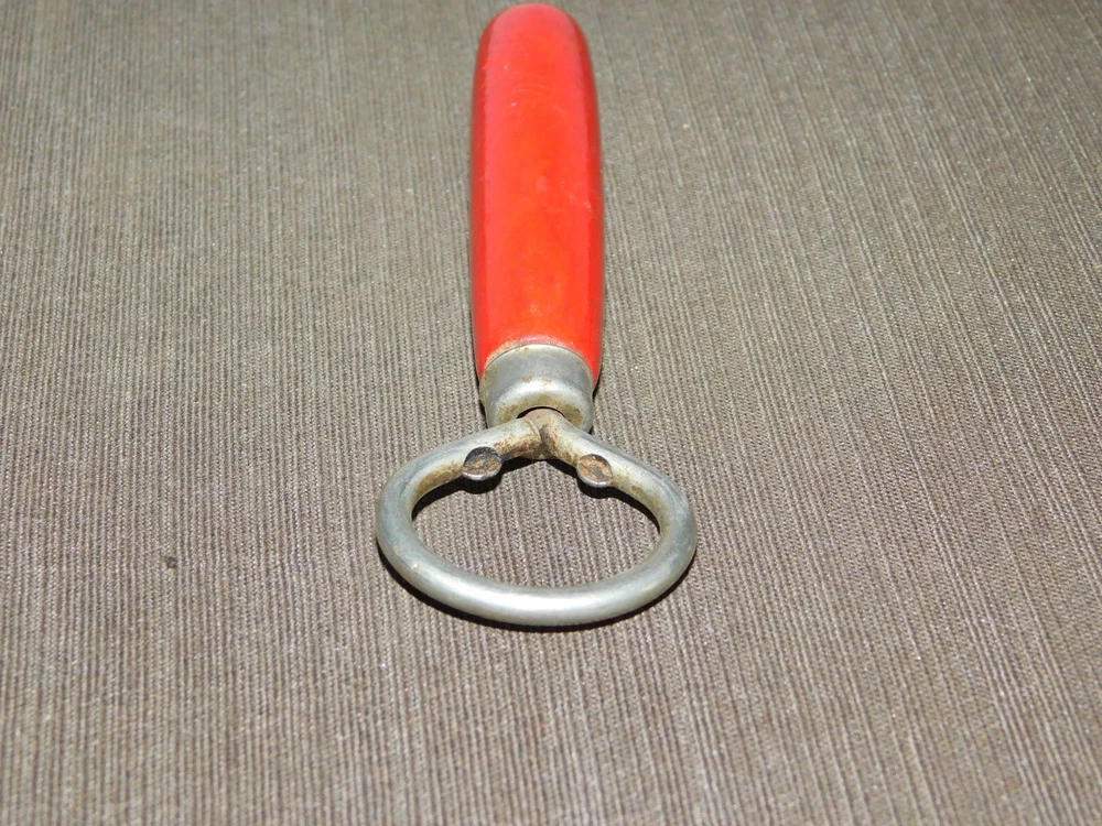 YOU ARE BIDDING ON..... VINTAGE KITCHEN 4 3/4" HIGH RED WOOD HANDLE BOTTLE OPENER . ..SHOWS SOME USAGE WEAR..HAS SCRATCHES/PAINT LOSS/AGE DISCOLORATION ..... PLEASE VIEW PHOTOS FOR CONDITION.***PLEASE E-MAIL IF YOU HAVE A QUESTION OR WANT AN ADDITIONAL PICTURE....PLEASE VISIT MY EBAY STORE FOR ADDITIONAL VINTAGE ITEMS..THANK YOU***5W-BX0337-XXXX