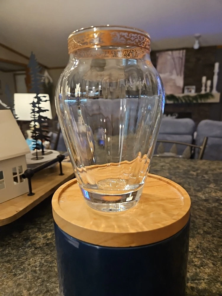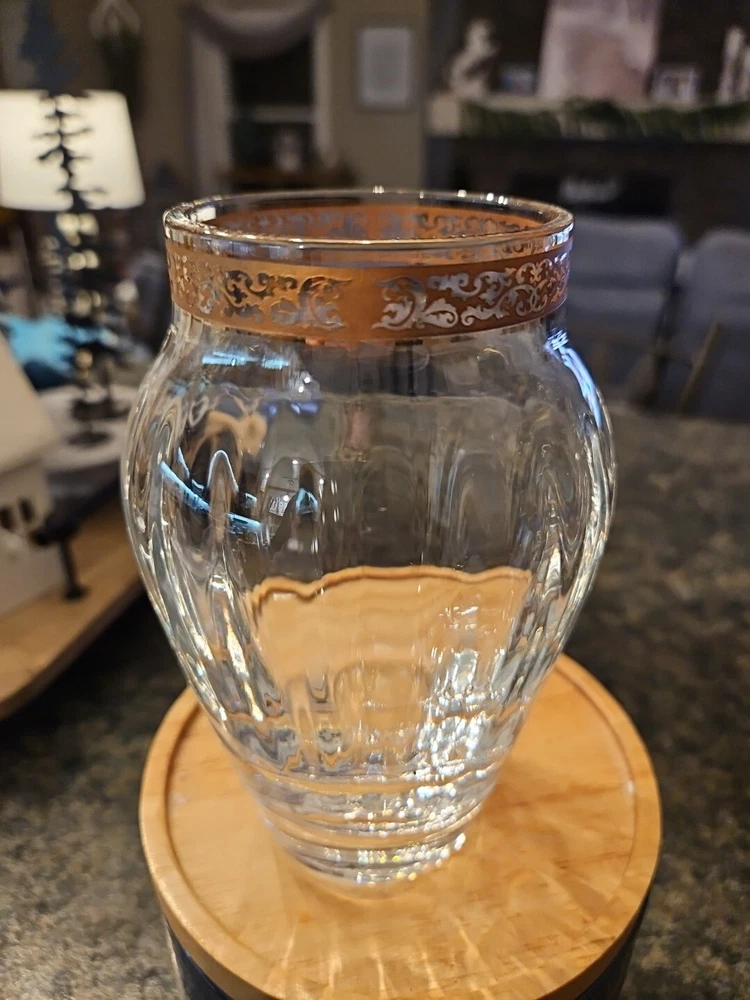 Elevate your home decor with the timeless elegance of the Vintage Lenox Autumn Crystal Vase. Adorned with a 24K gold band, this medium-sized vase boasts a hand-blown crystal finish, exuding a traditional charm that complements any room's aesthetic. The clear crystal, accented with a sophisticated gold trim, offers a glimpse into the exquisite craftsmanship from the 1980s, when each piece was meticulously crafted in the United States. Ideal for collectors and decorators alike, this vase is a testament to Lenox's commitment to quality and style. The vase, which is signed and features the iconic 'Crystals' line from Lenox, stands as a unique piece that harmonizes with both contemporary and classic ensembles. Whether displayed alone or as part of a curated collection, it brings a touch of luxury and heritage to your space. 5.5in tall