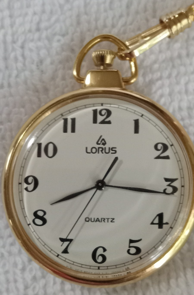 LORUS POCKET WATCH AND CHAIN IN VERY GOOD CONDITION BACK HAS MINOR SCRATCHES IT WORKED WHEN PUT AWAY BUT NON WORKING NOW (BATTERY???) LOW PRICE AND CAN COMBINE SHIPPING