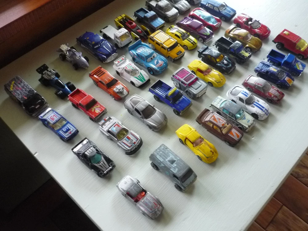 VINTAGE LOT 40 CARS, TRUCKS, VANS, SUPERMAN VAN, CORVETTE AND MANY MORE. THERE IS PAINT LOSS. LOTS OF MISC. AND DID NOT LOOK THEM UP. 1:8 SCALE. 7 11 8 8 Please always reference photos for Condition Details and wear. LOOK AT ALL THE PICTURES. IF YOU HAVE ANY QUESTIONS PLEASE FEEL FREE TO ASK. WE SHIP USPS SHIPPING ONLY. NO OUT OF COUNTRY SHIPPING. PLEASE SEE ALL OF OUR OTHER ITEMS