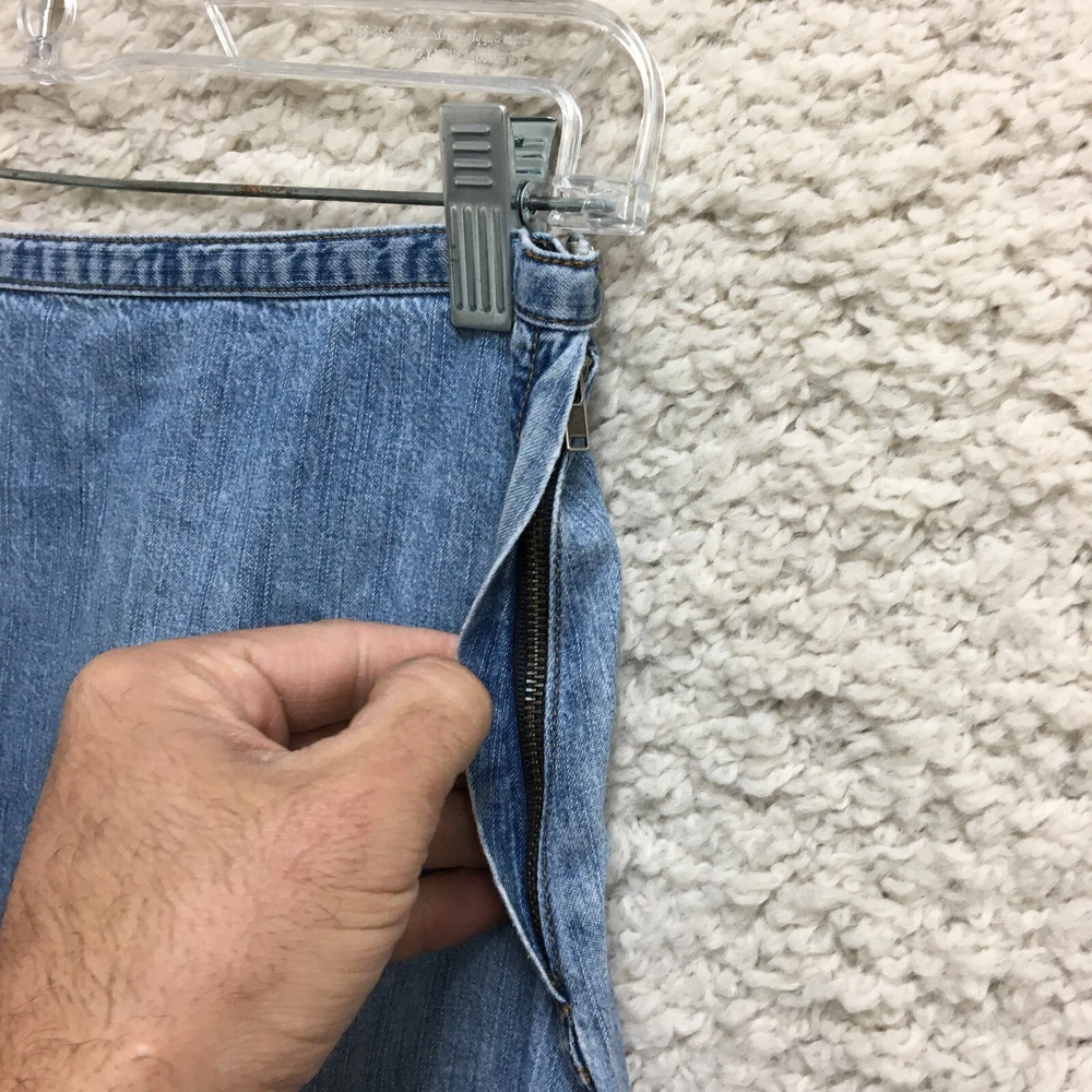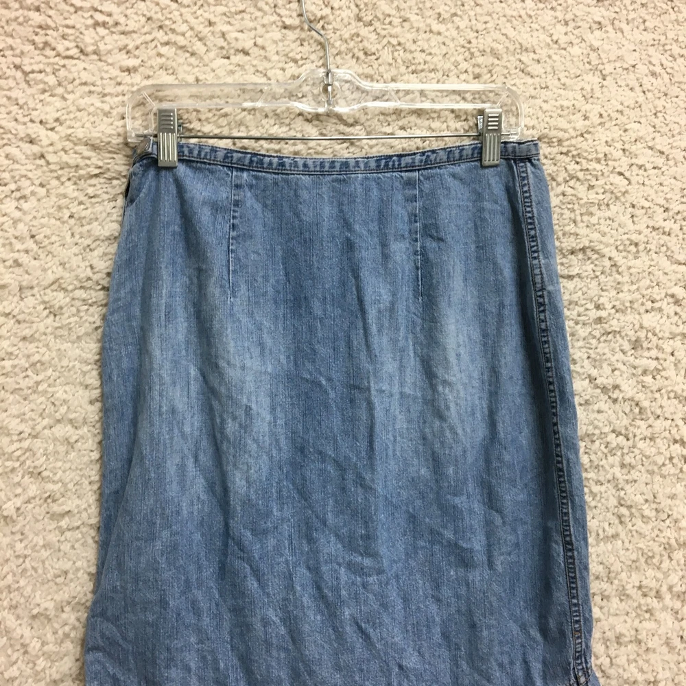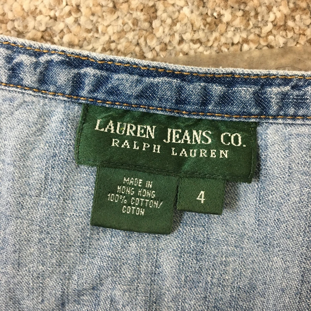Department: Women Features: All Seasons Style: Trumpet Color: Blue UPC: Does not apply gtin13: Does not apply Fabric Type: Denim Garment Care: Machine Washable Season: Fall, Spring, Summer Occasion: Casual, Party/Cocktail, Travel Type: Skirt Theme: 90s, American, Preppy Brand: Lauren Ralph Lauren Material: Cotton Closure: Zip Skirt Length: Midi Country/Region of Manufacture: Hong Kong Rise: High Pattern: Solid Accents: Ruffle, Zipper Seller Notes: “Good Used Condition. Please, See Pictures for Full Condition and Measurements.” Size: 4 Size Type: Regular Vintage: Yes