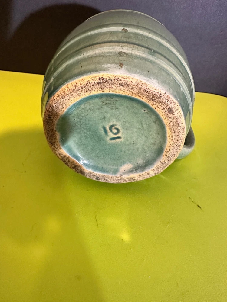This vintage McCoy green #16 stoneware barrel mug is a unique addition to any collection. With its classic design and durable material, this mug is perfect for both decorative and functional use. The brand, McCoy, is well-known for their quality pottery and this vintage original is no exception. The mug's color is a beautiful shade of green and it features the iconic McCoy logo. Its year of manufacture is 1920, making it a rare find for collectors. This mug is perfect for anyone who appreciates vintage pottery or who wants to add a touch of history to their collection.