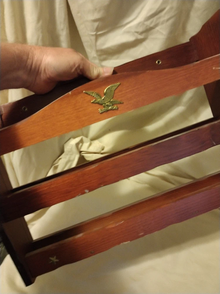 VINTAGE MCM WOODEN WALL MOUNT MAGAZINE RACK WITH EAGLE EMBLEM 16.5 * 12 * 4.5