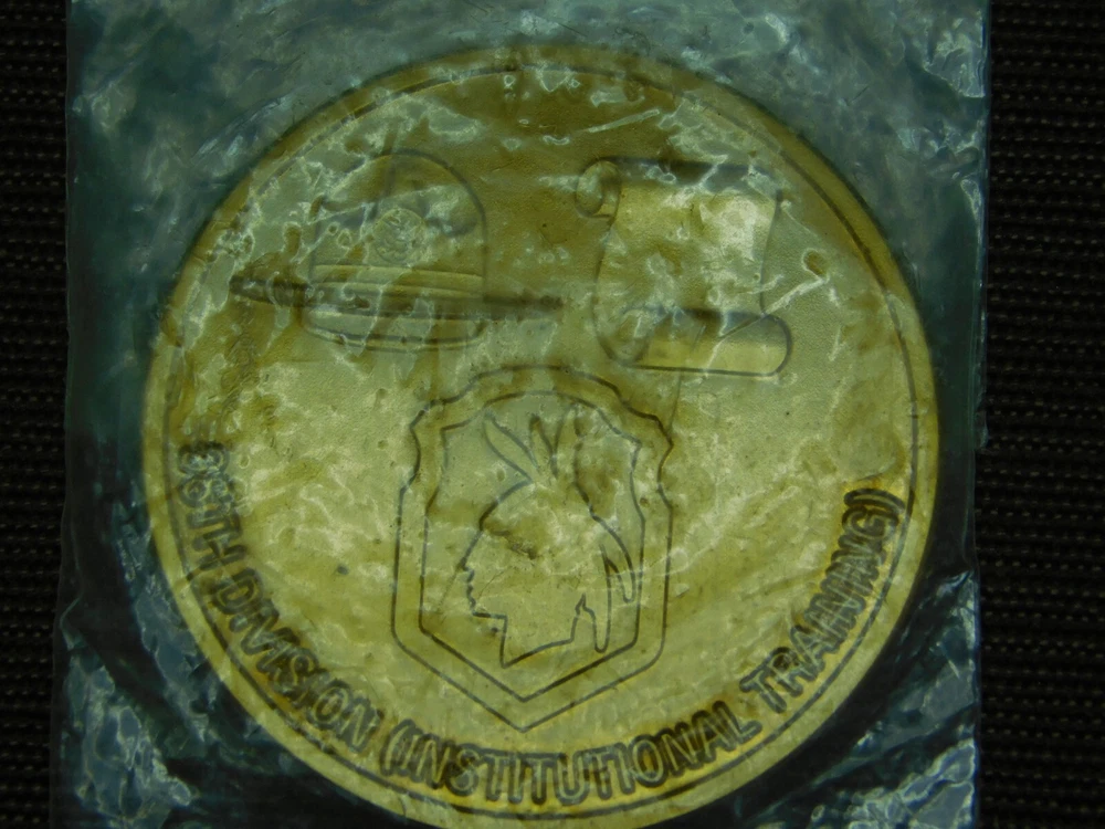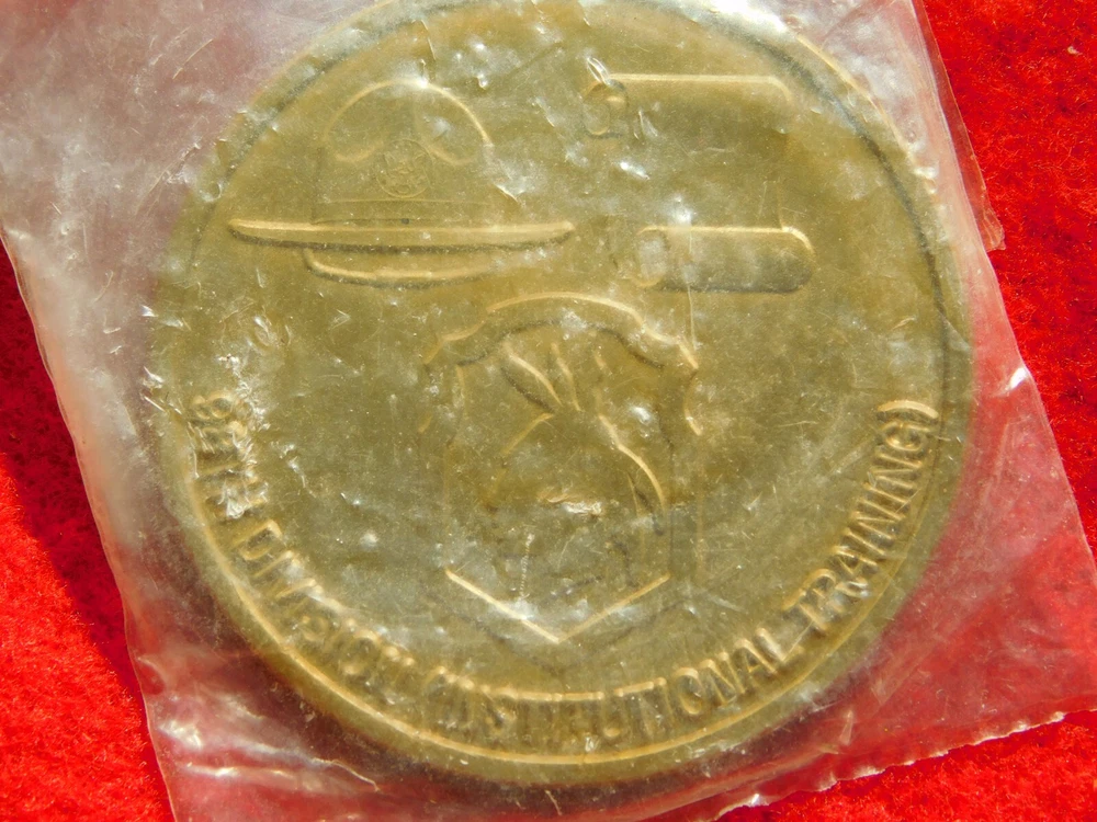 YOU ARE BIDDING ON..... VINTAGE MILITARY 98th DIVISION INSTITUTIONAL TRAINING CHALLENGE COIN ..STILL SEALED IN PLASTIC MAY HAVE AGE DISCOLORATION/ .......PLEASE LOOK CLOSELY... PLEASE VIEW PHOTOS FOR CONDITION...***PLEASE E-MAIL IF YOU HAVE A QUESTION OR WANT AN ADDITIONAL PICTURE....PLEASE VISIT MY EBAY STORE FOR ADDITIONA VINTAGE ITEMS..THANK YOU***1WBX5678-PTCH3333