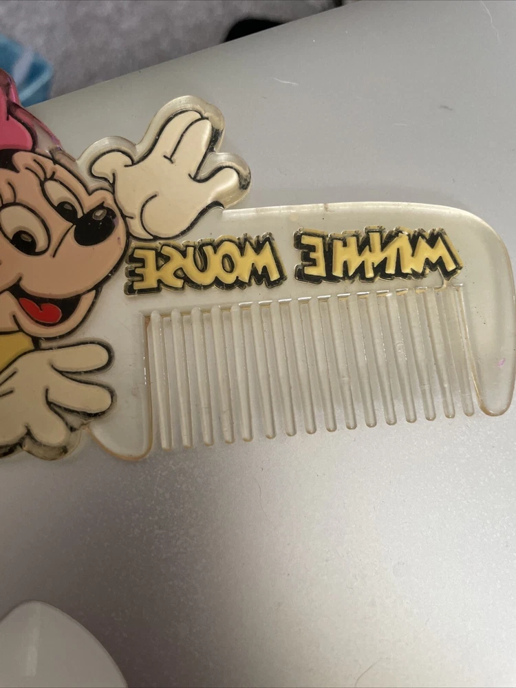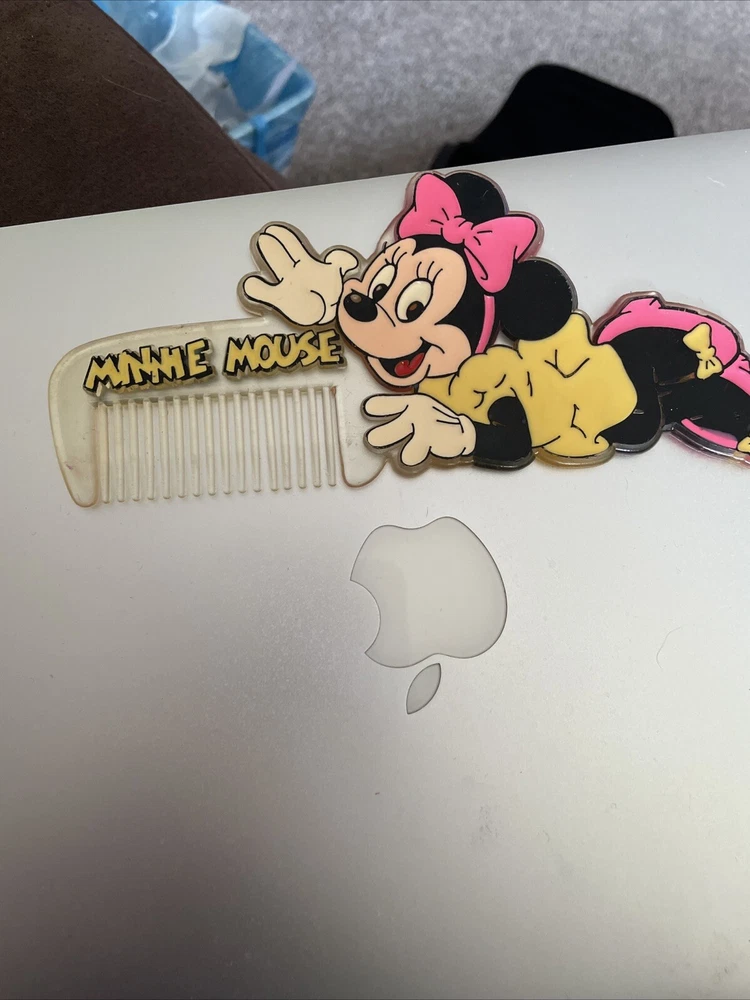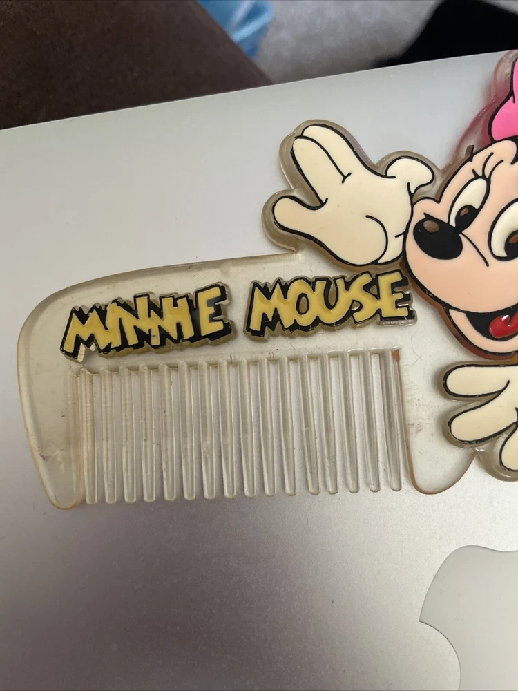 This vintage Minnie Mouse comb is a must-have for any Disney fan. The comb features Minnie Mouse, a beloved character from the Disney franchise, and is perfect for adding a touch of whimsy to your hair. The brand is Disney, ensuring the quality and authenticity of the product. This collectible item is part of the Disneyana Contemporary (1968-Now) category and is a plush toy. It is perfect for display or for use as a functional comb. Add this charming piece to your collection today and show your love for Minnie Mouse and Disney.