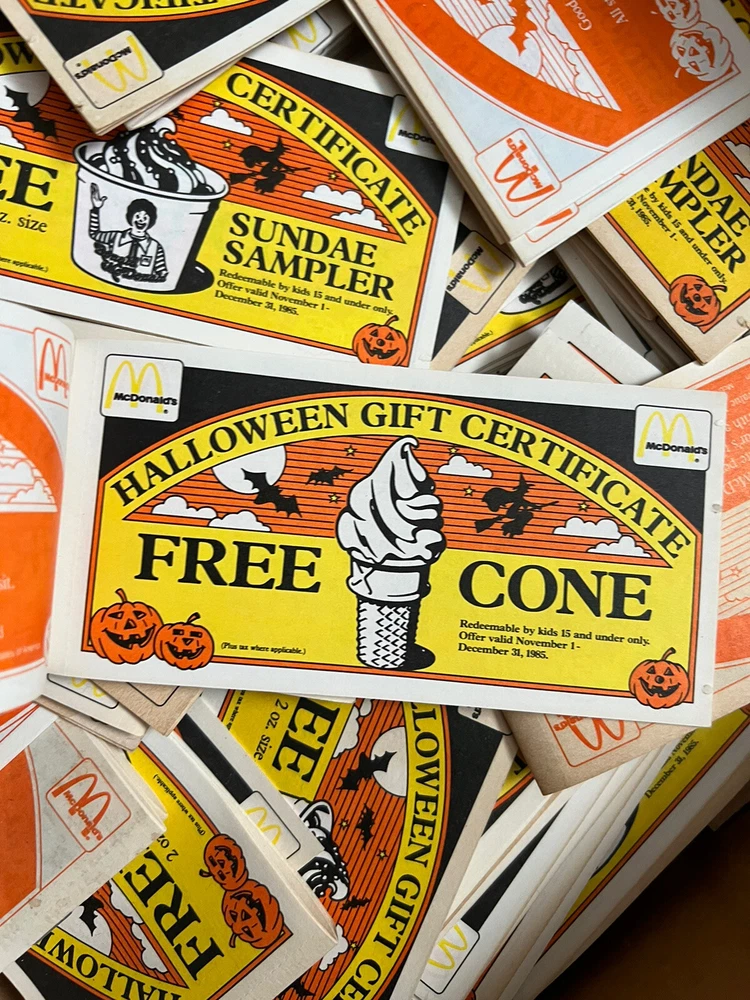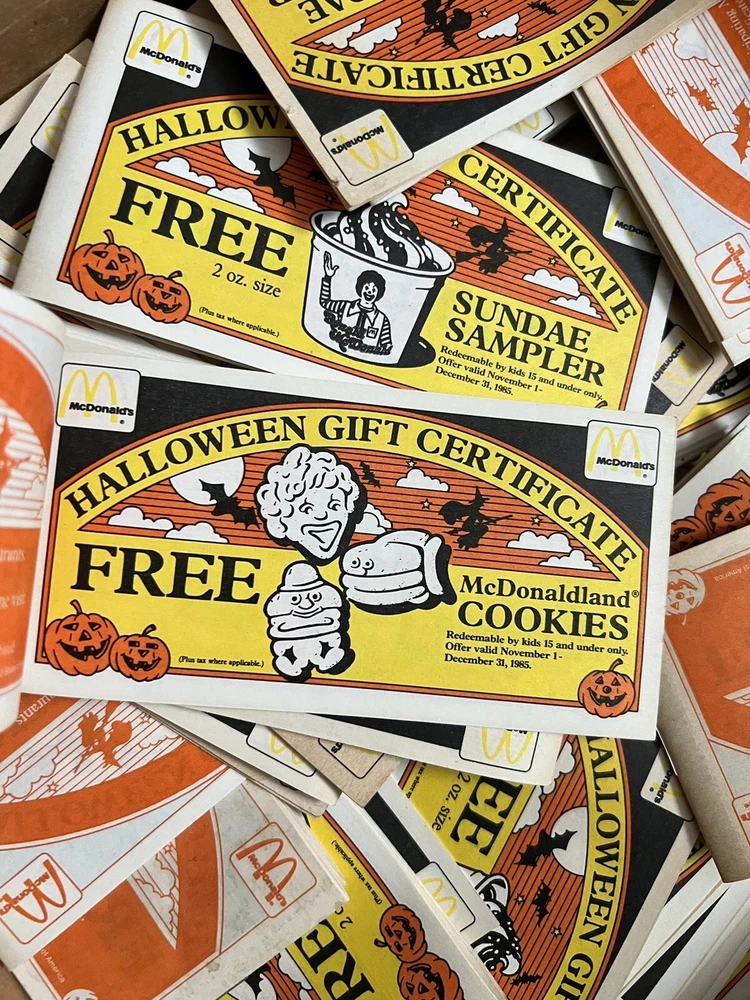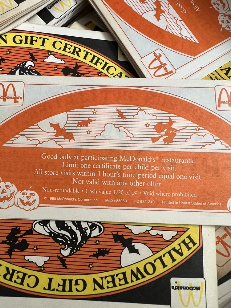 VINTAGE McDonalds Halloween UNUSED Gift Certificates Coupon Book (12) From 1985