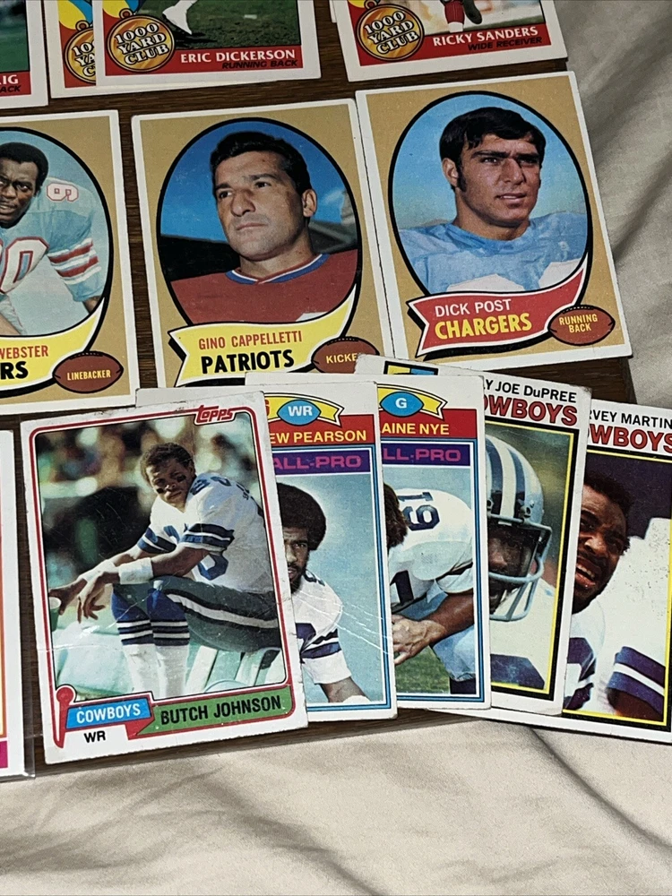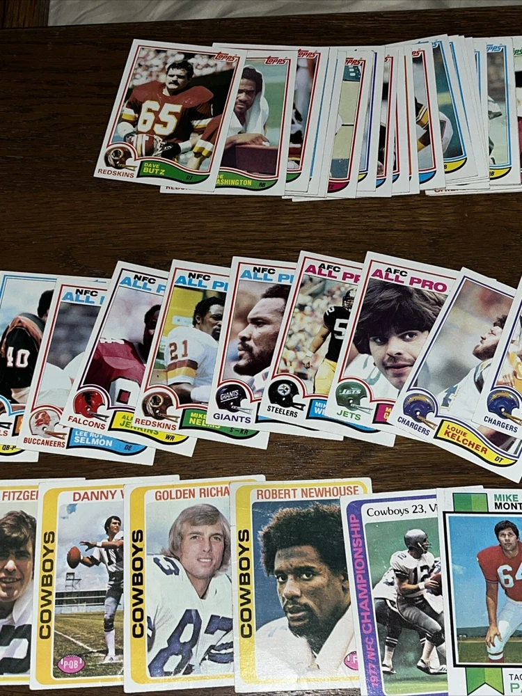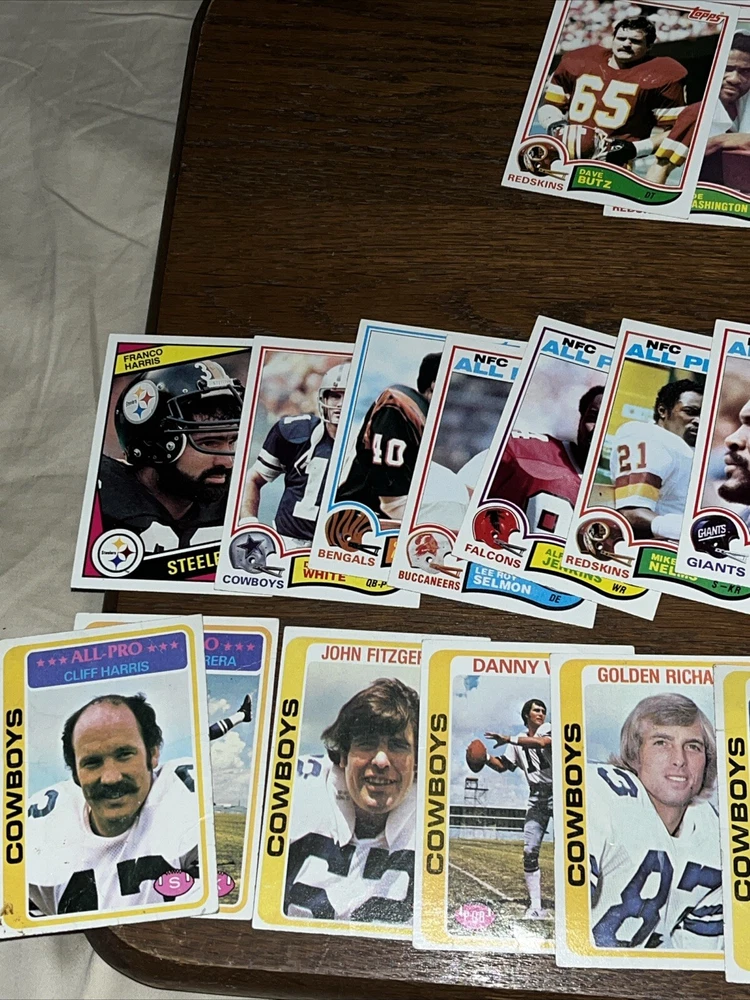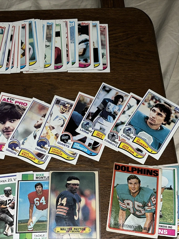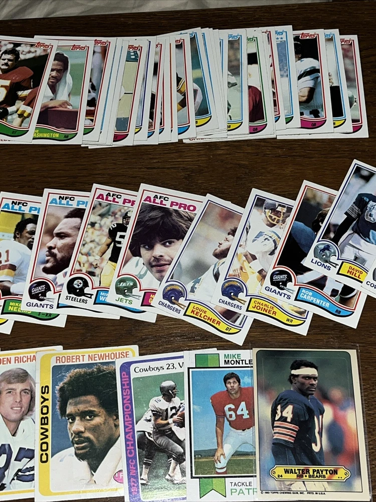 Team:Dallas Cowboys, Detroit Lions, San Francisco 49ersSeason:1970-71Country/Region of Manufacture:United StatesYear Manufactured:1982Vintage:YesManufacturer:ToppsSport:FootballType:Sports Trading CardPlayer/Athlete:Walter PaytonFeatures:Base Set, Rookie, InsertSet:1983 Topps Album StickersLeague:National Football League (NFL)Number of Cards:90Card Size:Standard
