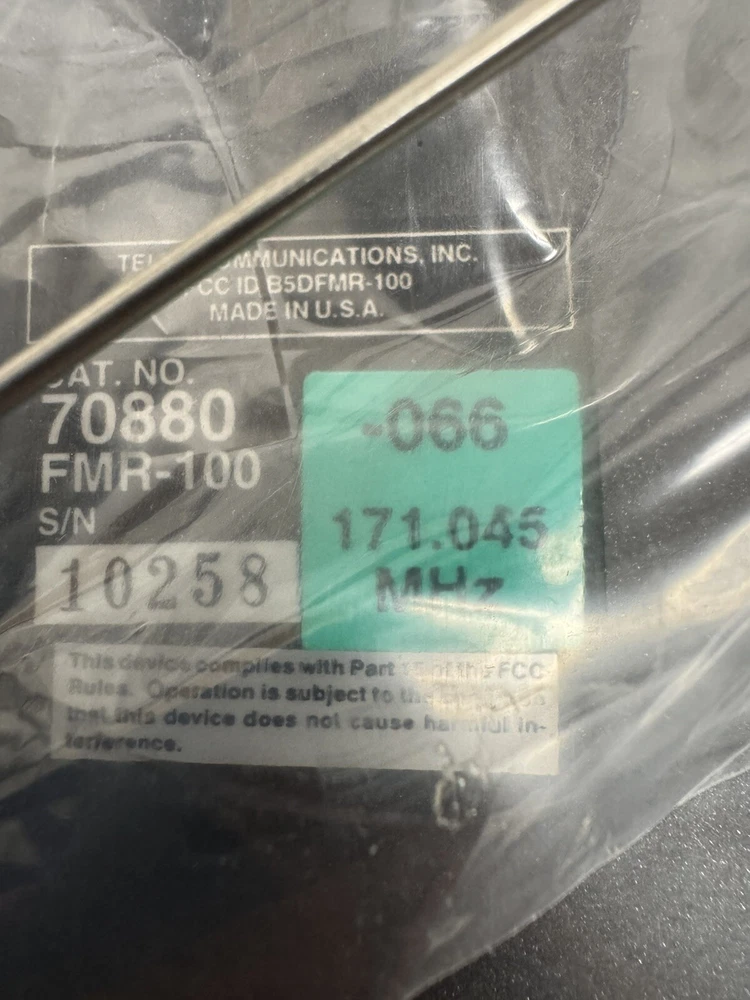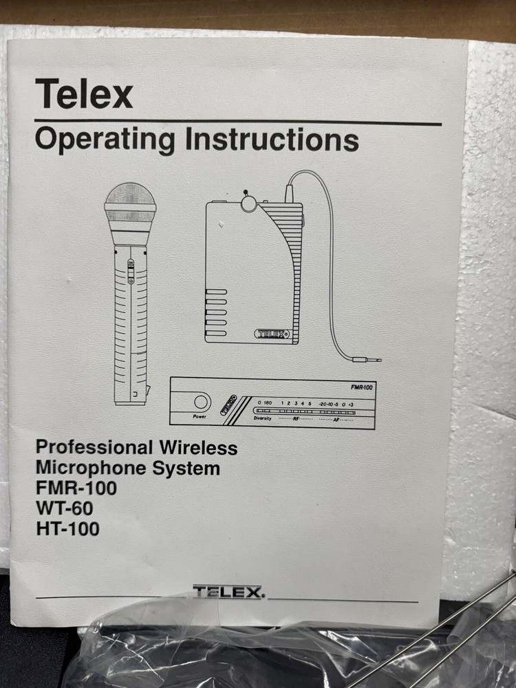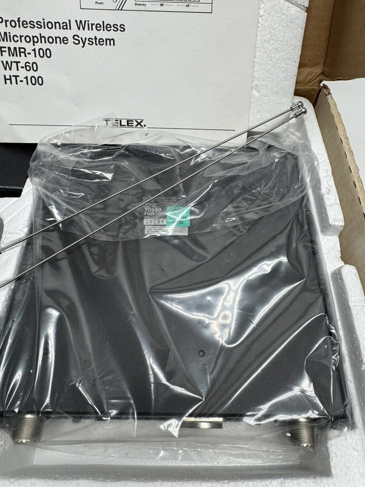 1. Brand: Telex 2. Item Description: SEALED NEW VINTAGE NOS Telex FMR-100 Wireless Microphone Receiver 3. Condition: This box has been opened but the components are sealed. The components inside are 100% brand new from the manufacturer. The pictures are from the actual item on sale. 4. Color: 5. Included Items: A. Included: Original manufacturer's packaging, B. Not Included: 6. Suggested Retail Price: $ 7. Product Features: